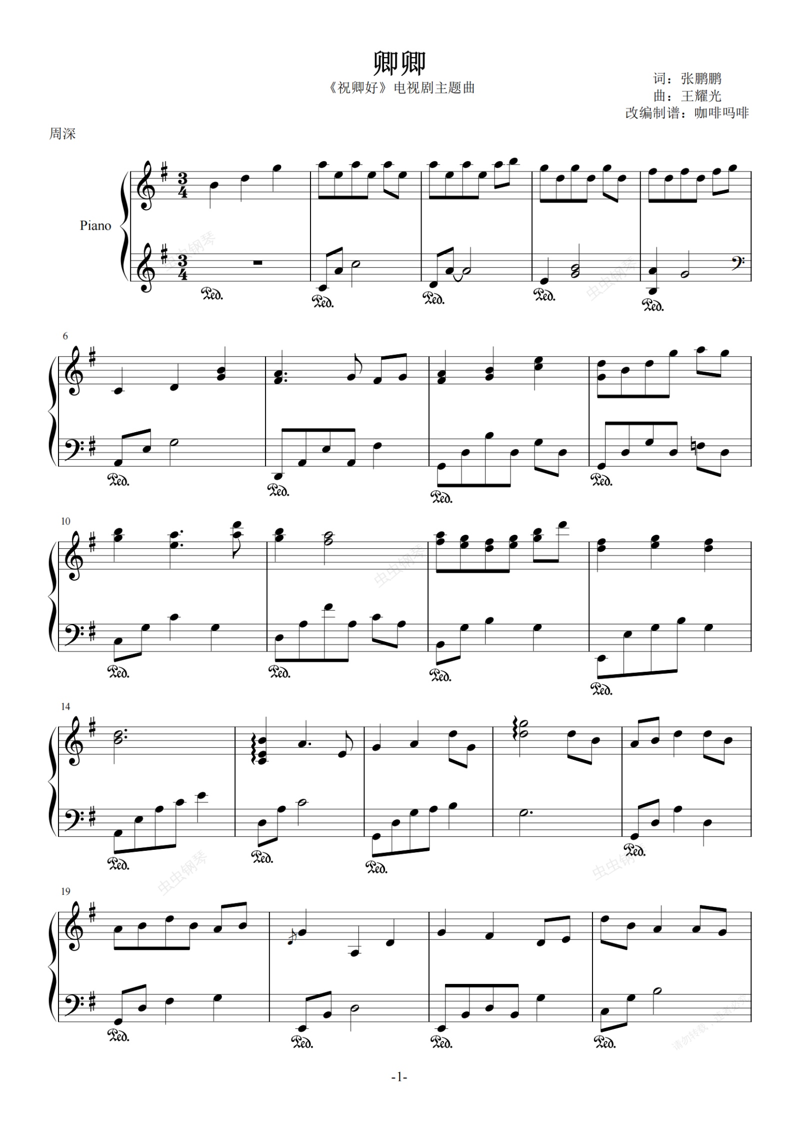 钢琴谱:卿卿-周深 G调简化版钢琴独奏谱