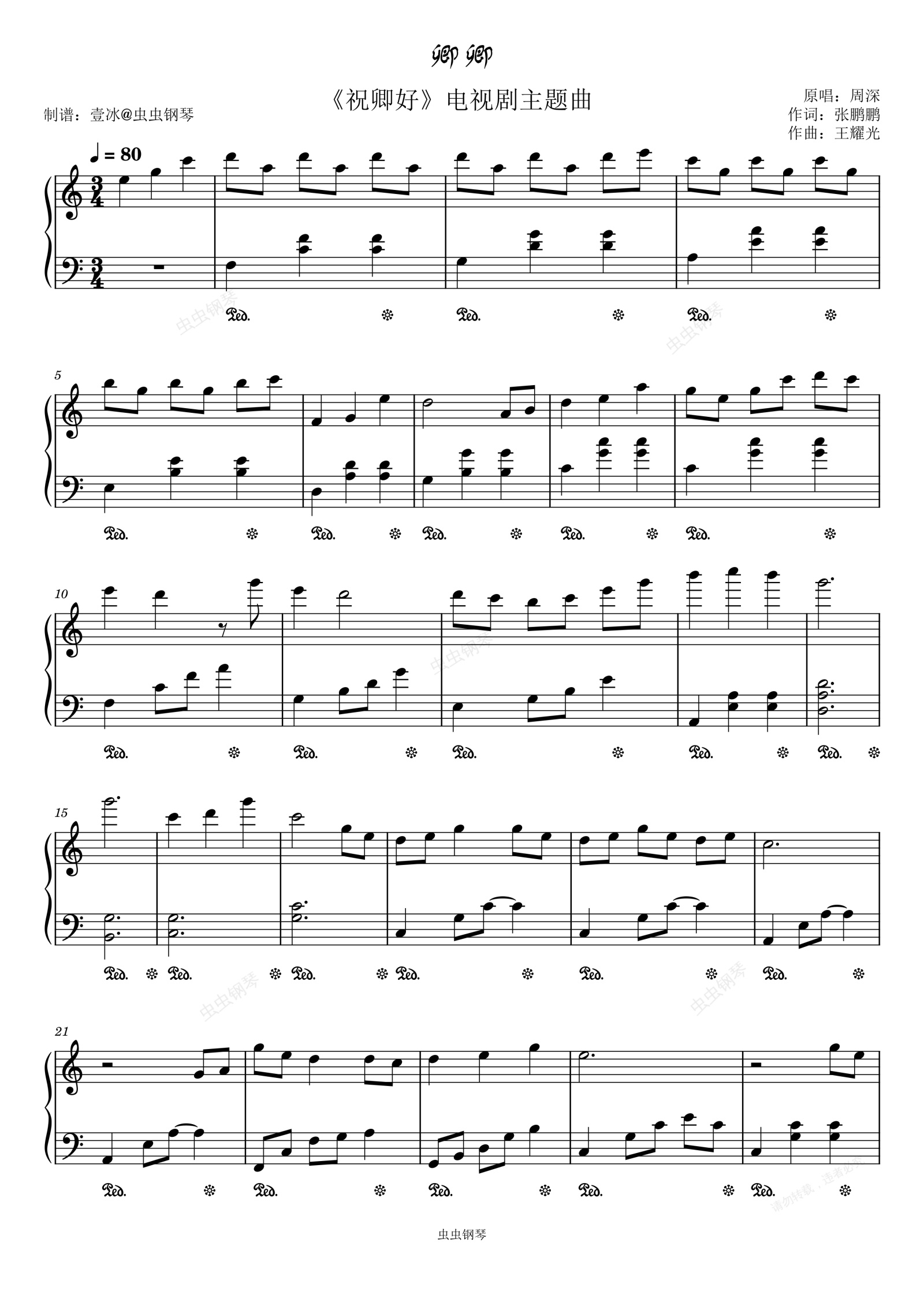 钢琴谱:卿卿//《祝卿好》电视剧主题曲-C调