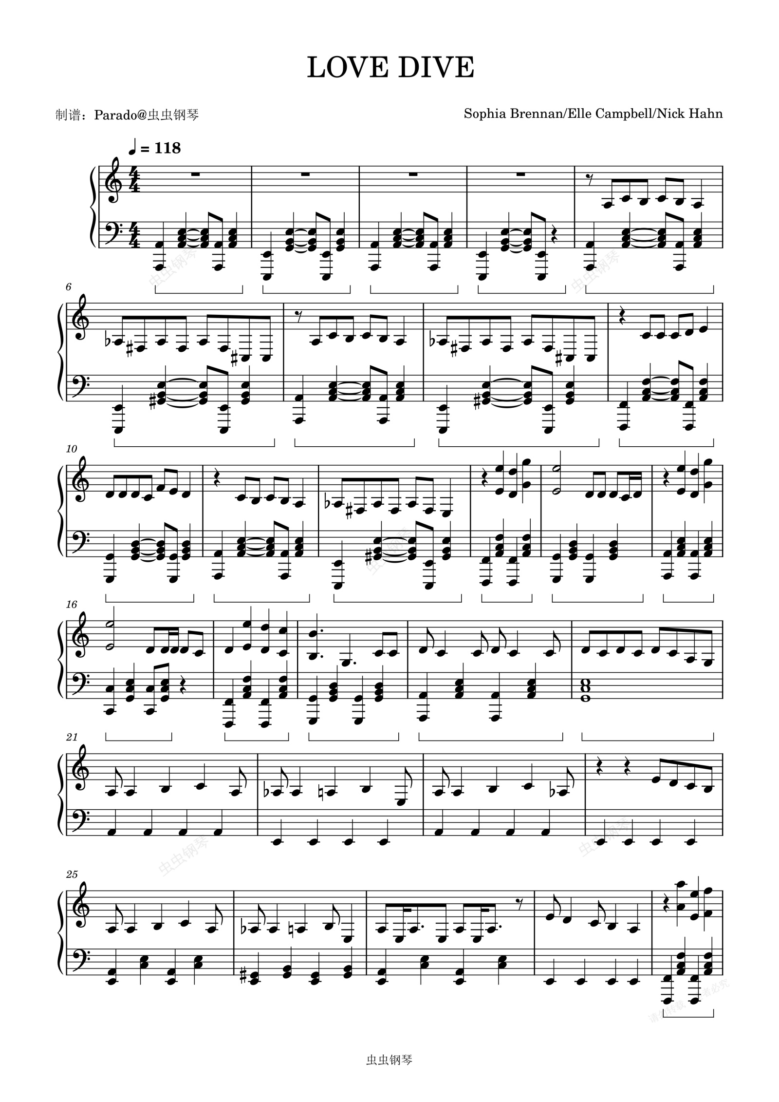 钢琴谱:【简易改编】LOVE DIVE - C调 - IVE