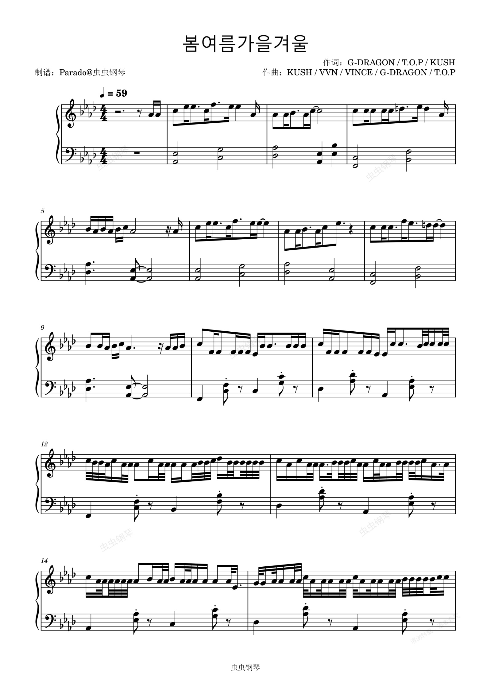 钢琴谱:【新曲回归】봄여름가을겨울/Still Life - 原调 - BIGBANG