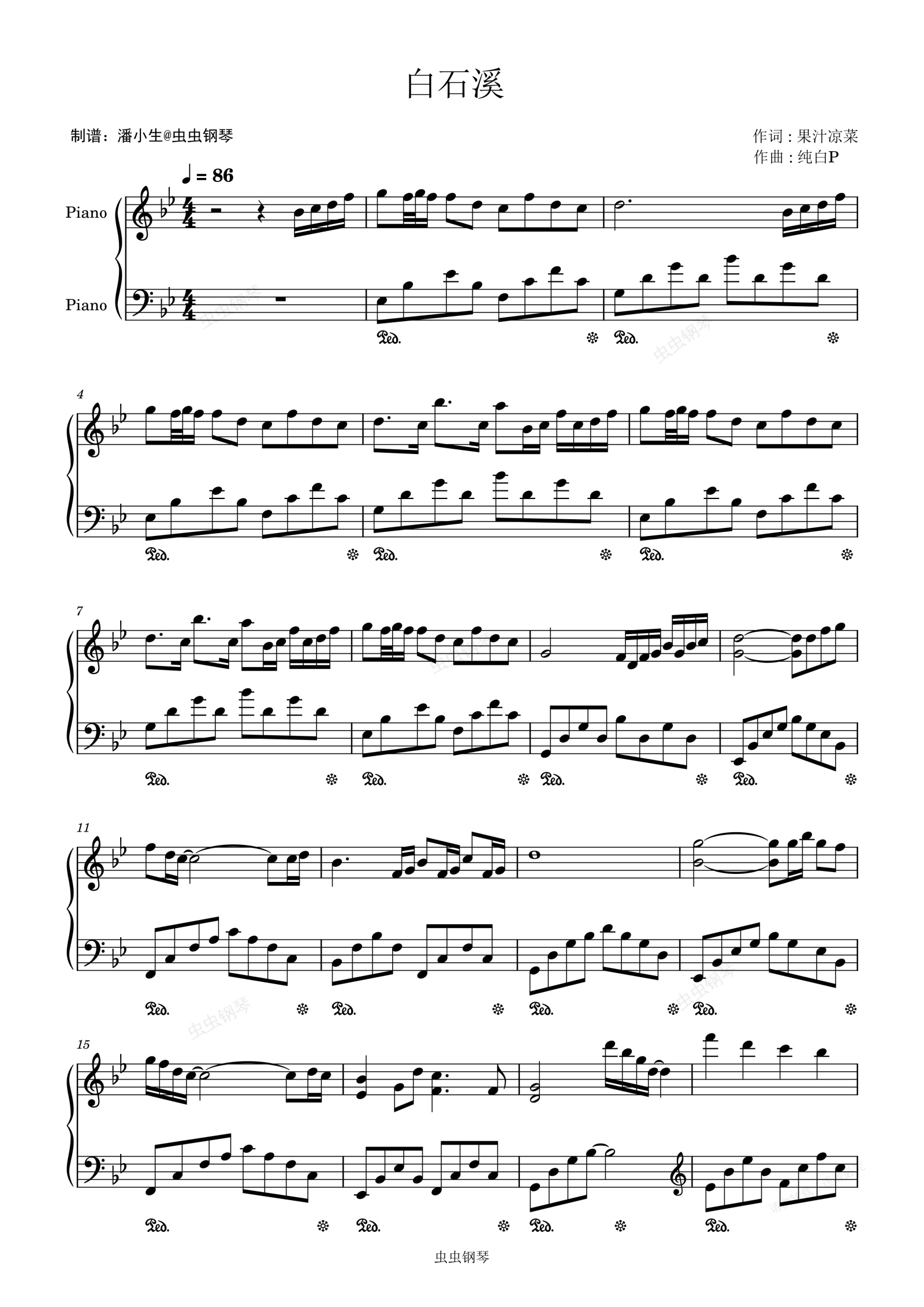 钢琴谱:白石溪 独奏版 钢琴五线谱 洛天依 乐正绫