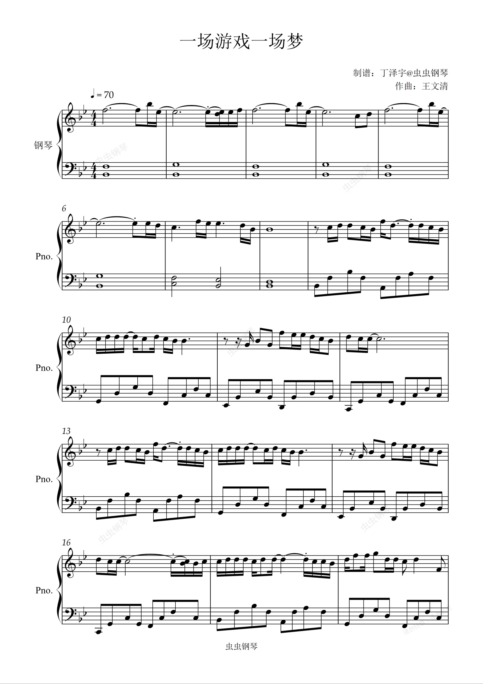 钢琴谱:一场游戏一场梦 王杰 钢琴谱