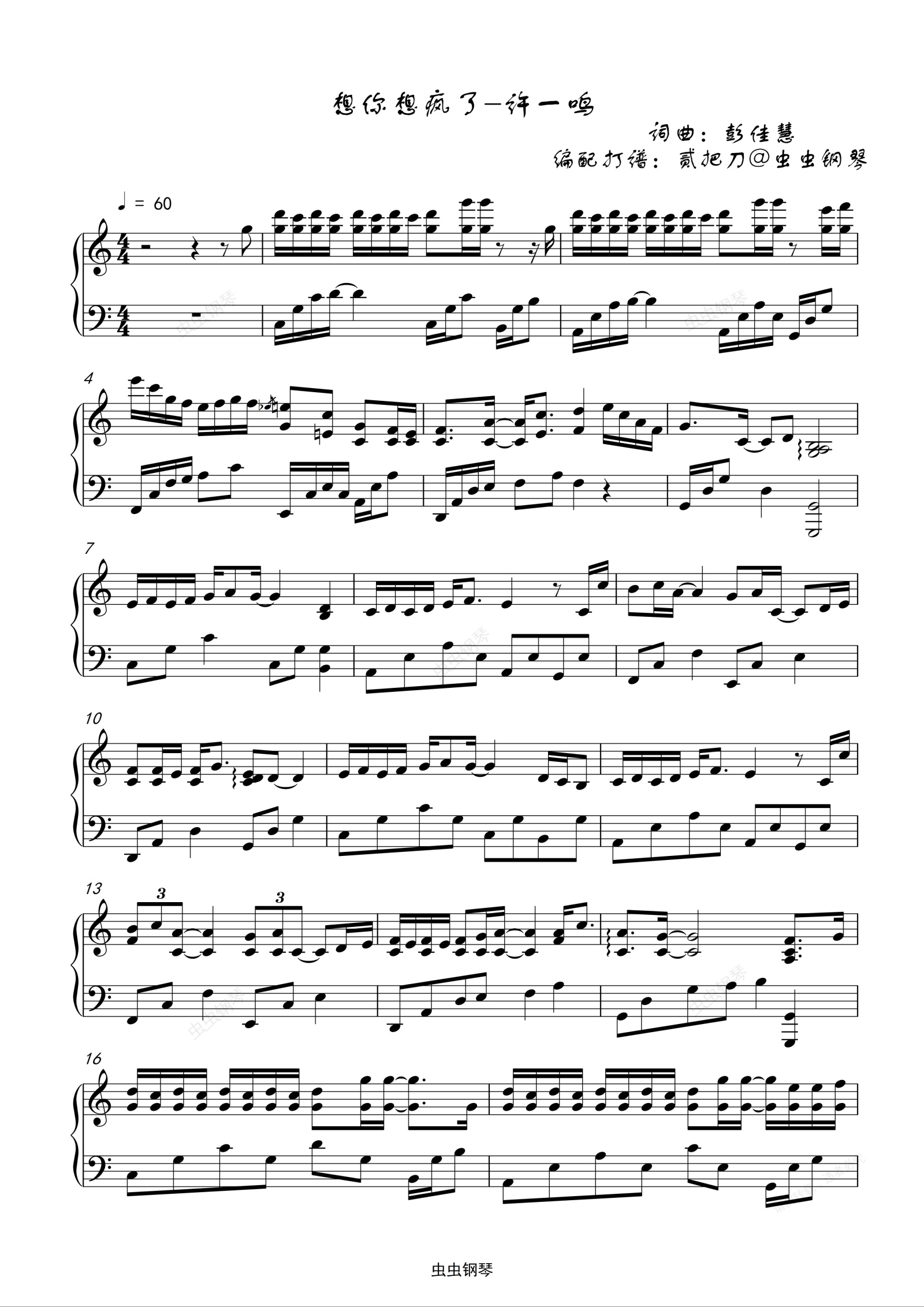 钢琴谱:想你想疯了C调超高还原
