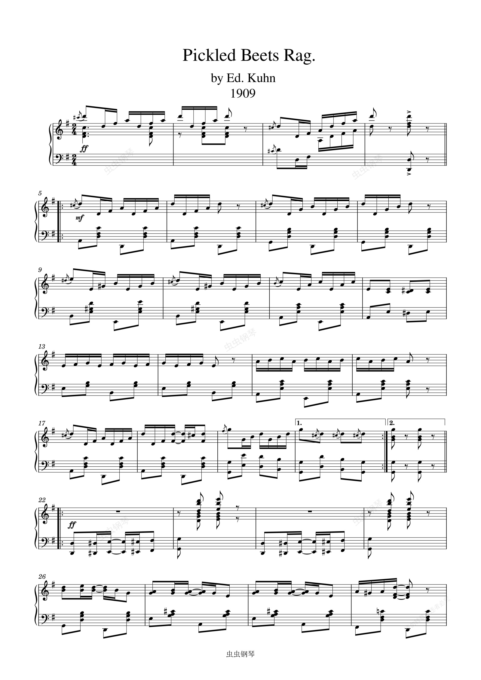 钢琴谱:Pickled Beets Rag by Ed. Kuhn (1909)