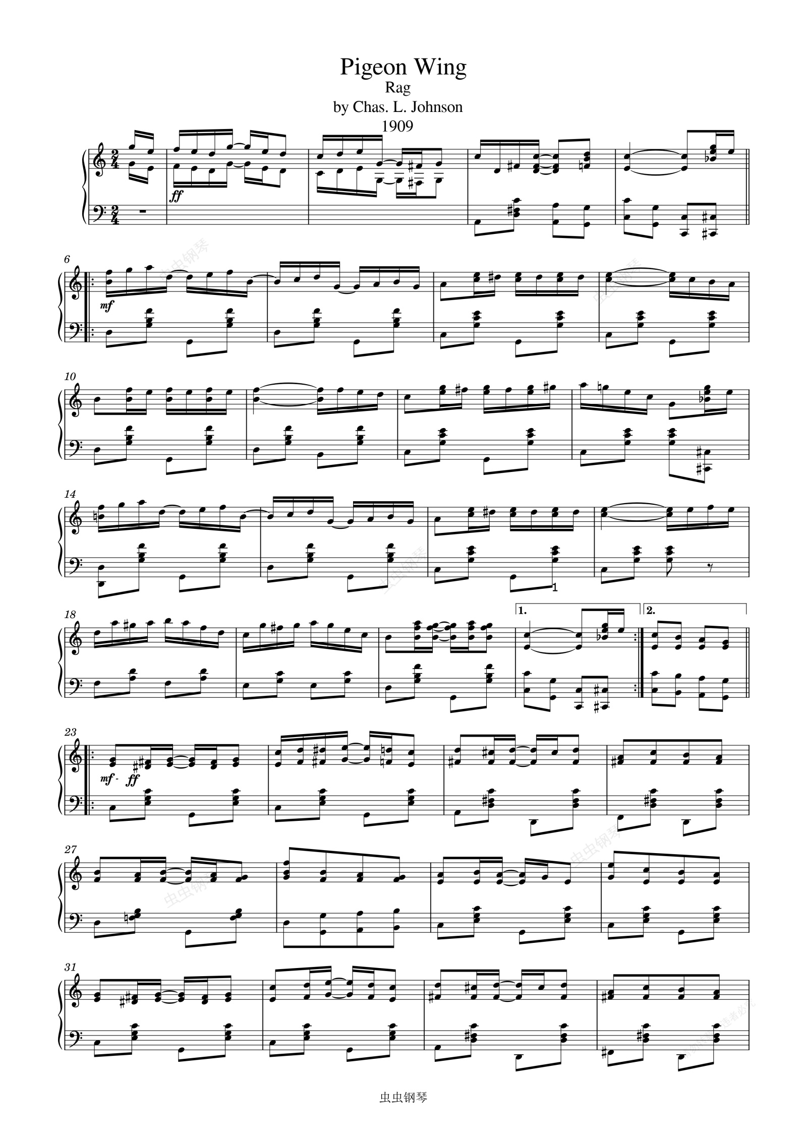 钢琴谱:Pigeon Wing Rag by Charles L. Johnson (1909)
