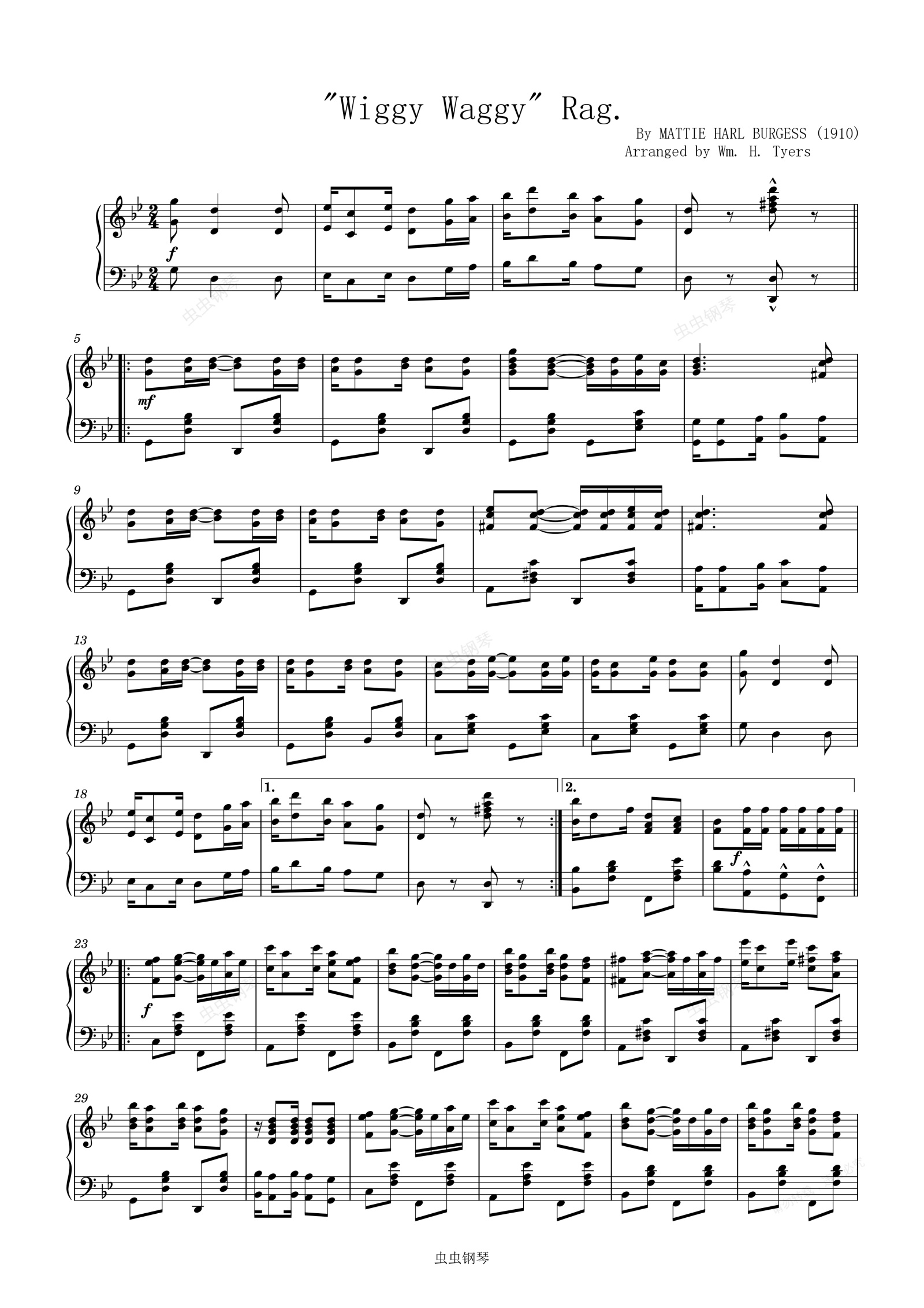 钢琴谱:Wiggy Waggy Rag by Mattie Harl Burgess (1910)
