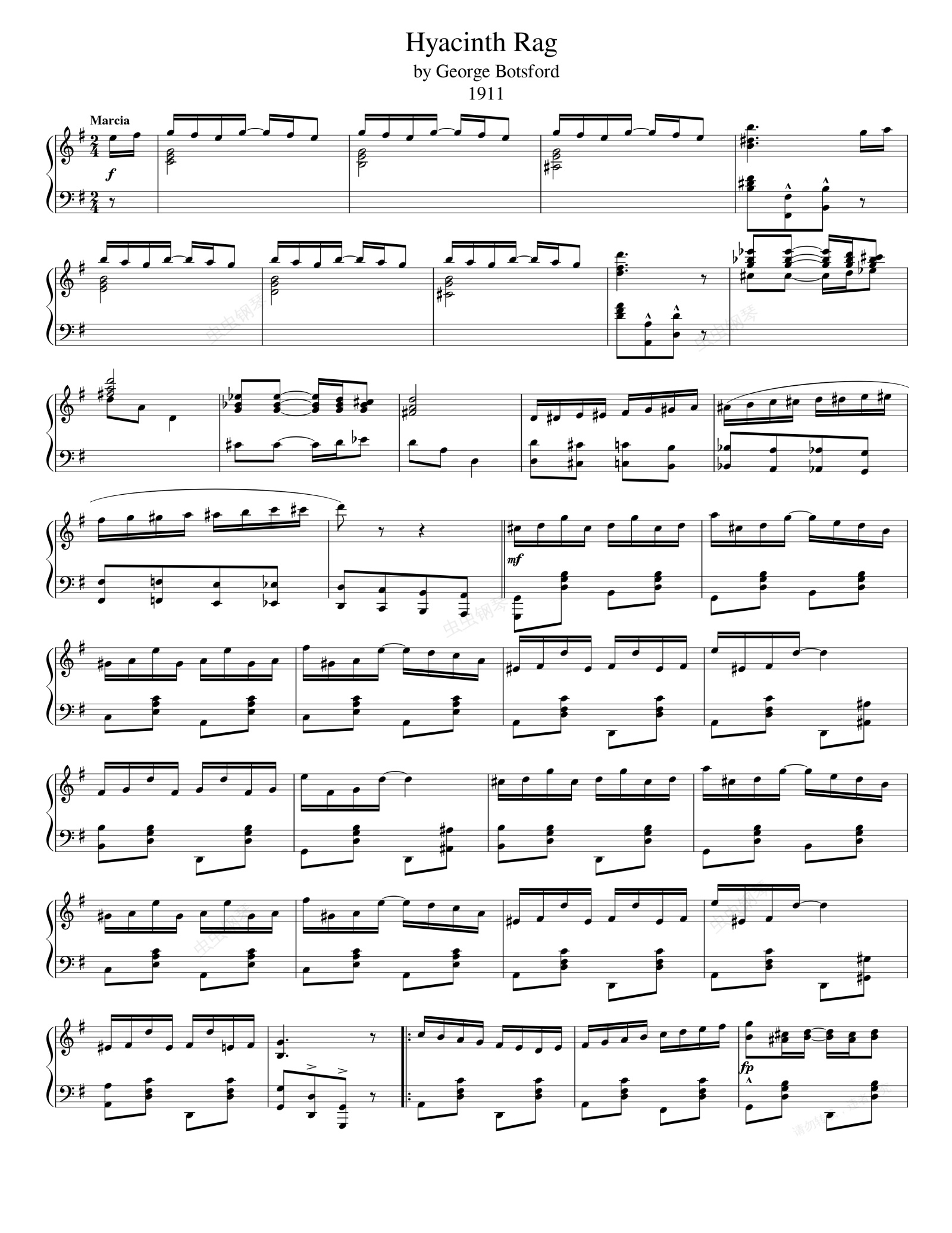 钢琴谱:Hyacinth Rag by George Botsford (1911)