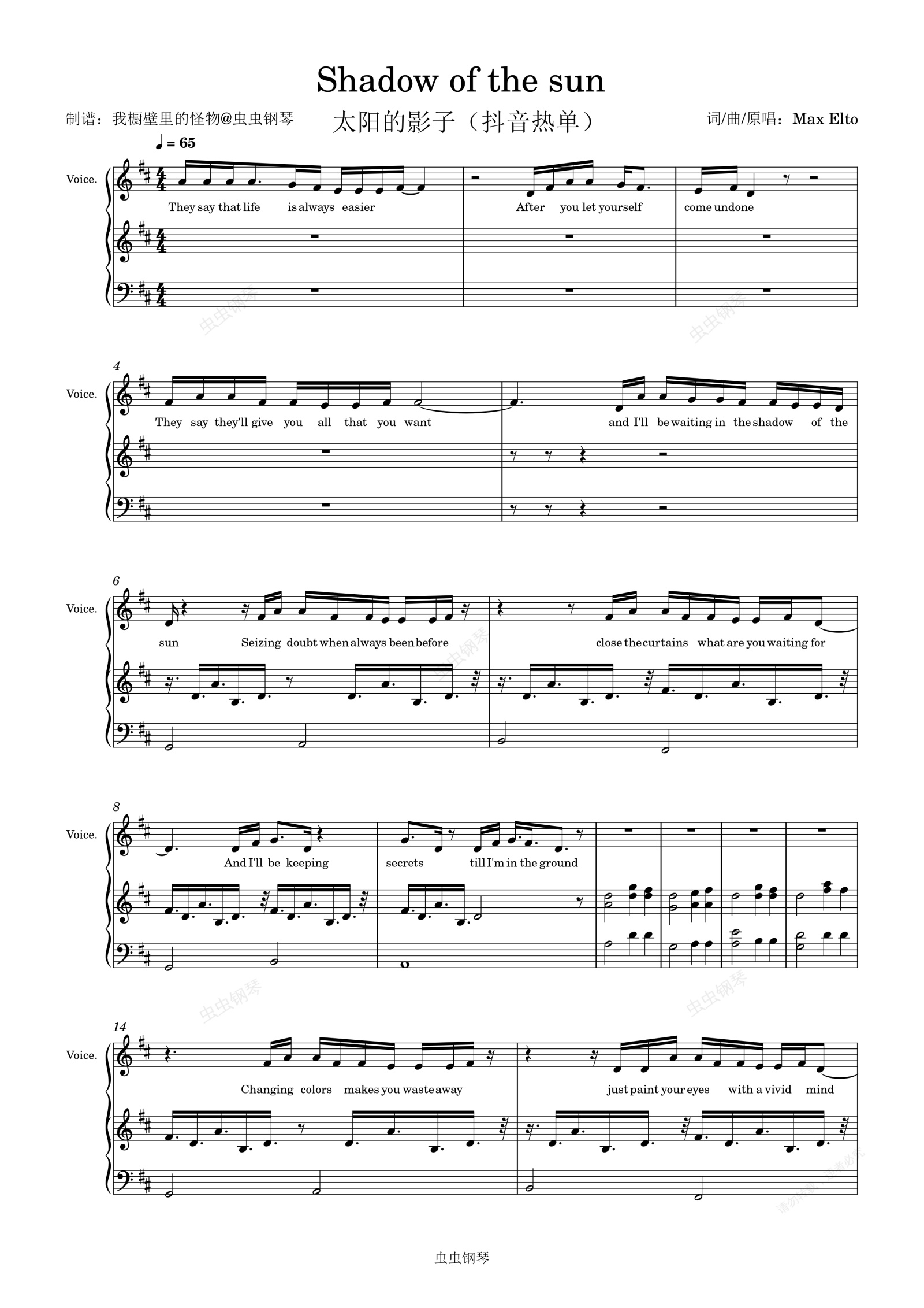 钢琴谱:【抖音热歌】Shadow of the sun高度还原完整弹唱谱