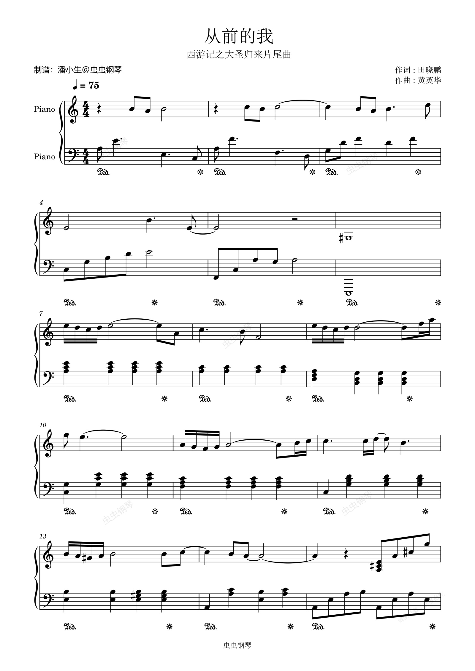 钢琴谱:从前的我 西游记之大圣归来片尾曲 陈洁仪 独奏版 钢琴五线谱