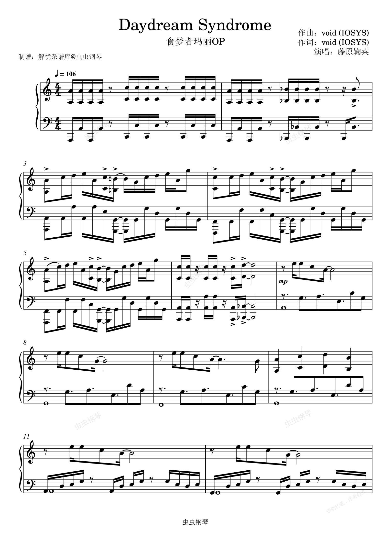 钢琴谱:Daydream Syndrome(食梦者玛丽OP)