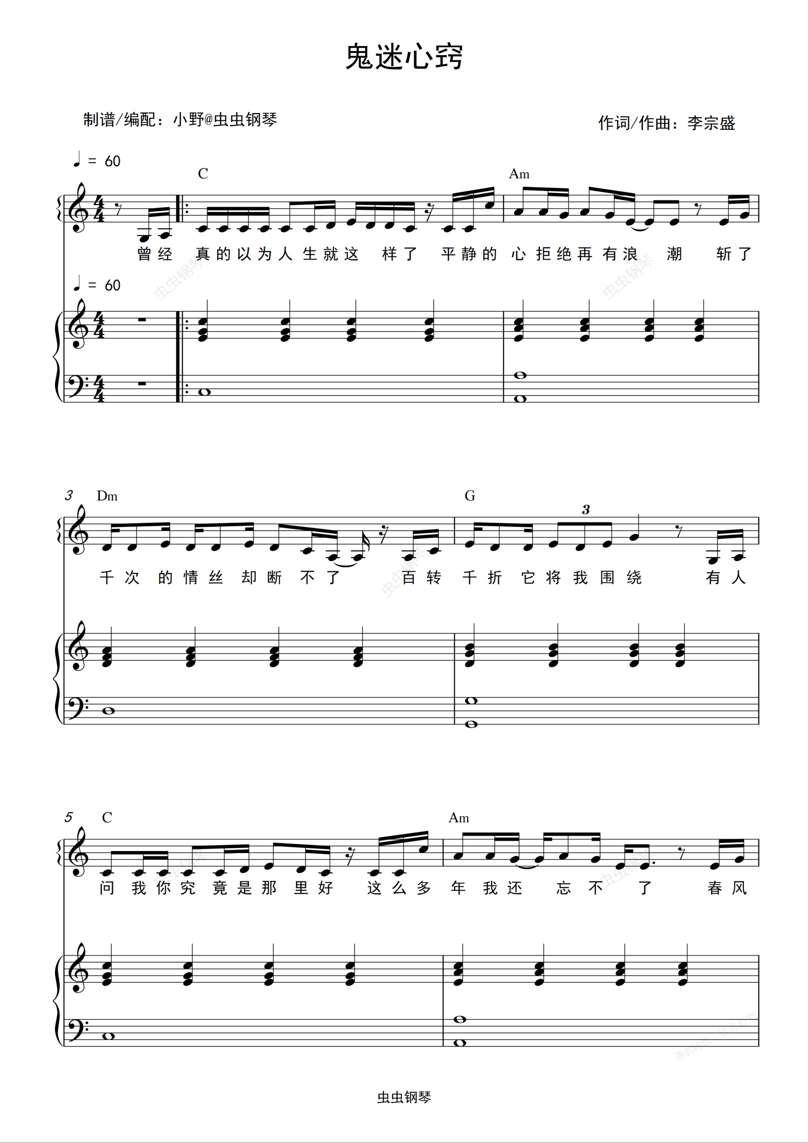 钢琴谱:鬼迷心窍(和弦弹唱版)