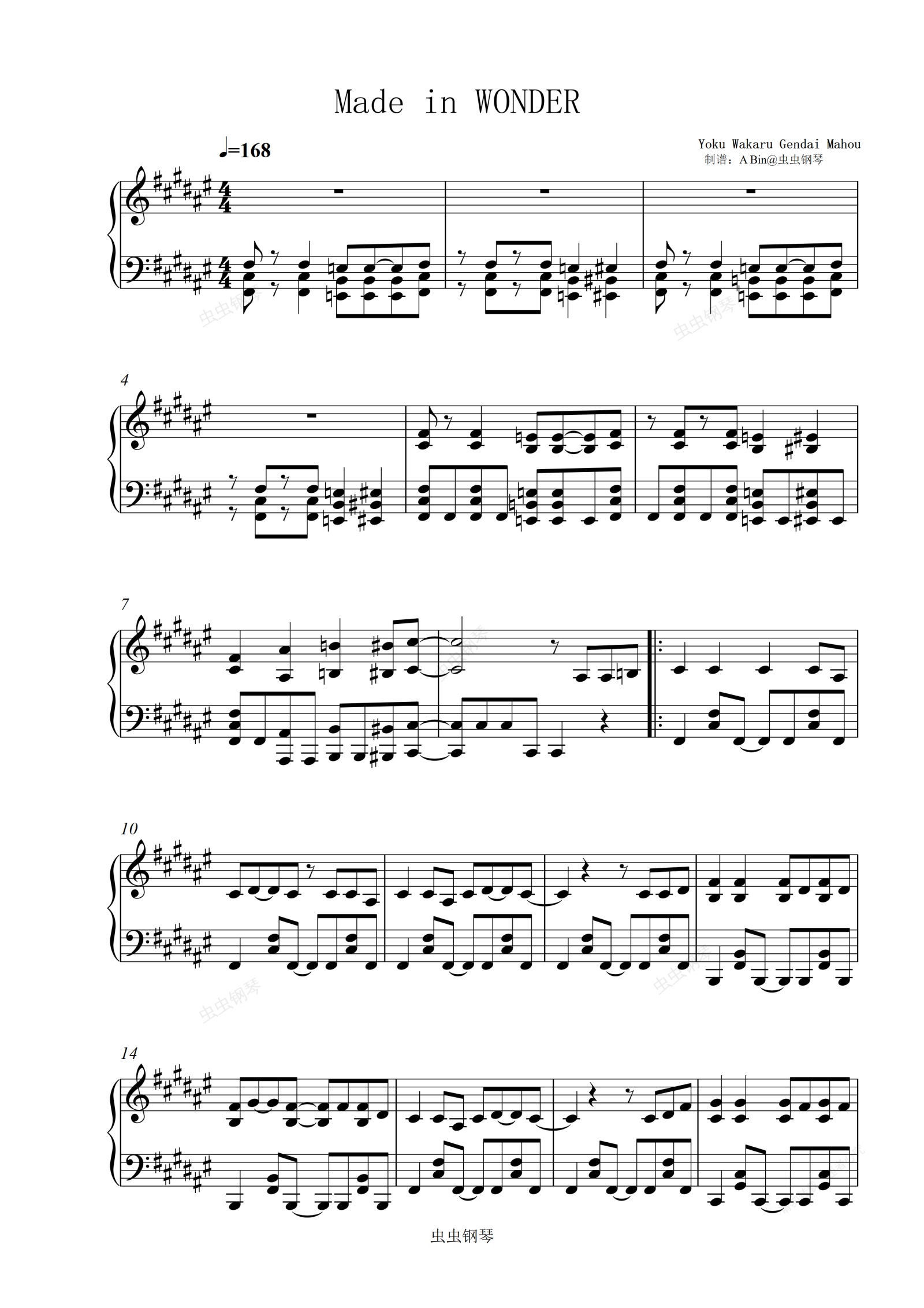 钢琴谱:Made in WONDER-简单易懂的现代魔法 动画