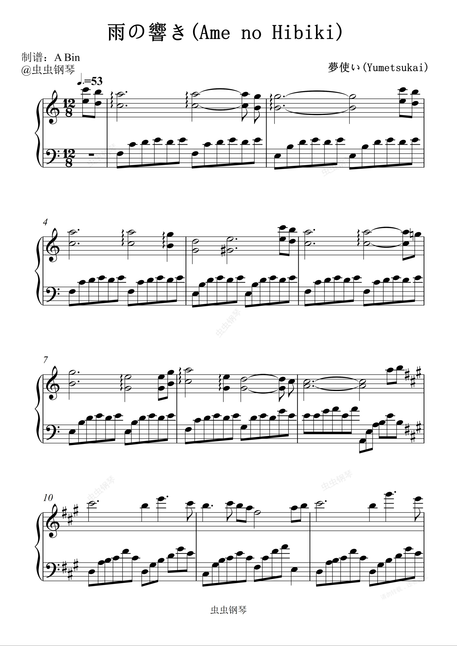 钢琴谱:雨の響き(Ame no Hibiki)