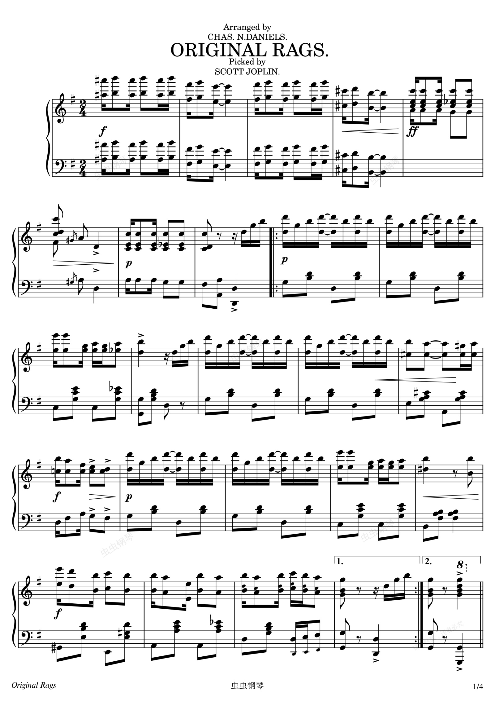 钢琴谱:Original Rags - Scott Joplin - 1899