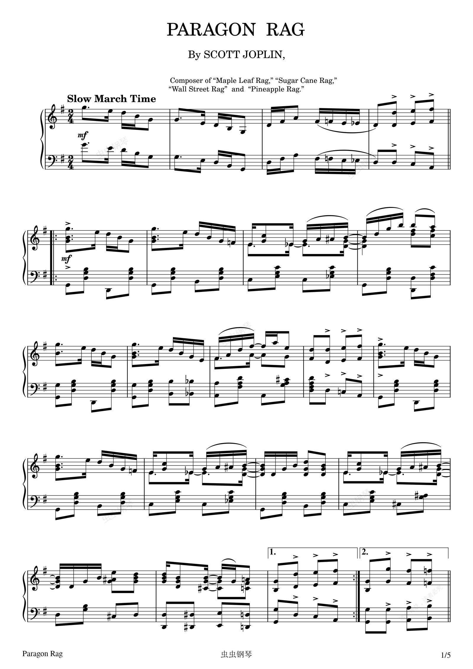 钢琴谱:Paragon Rag - Scott Joplin - 1909