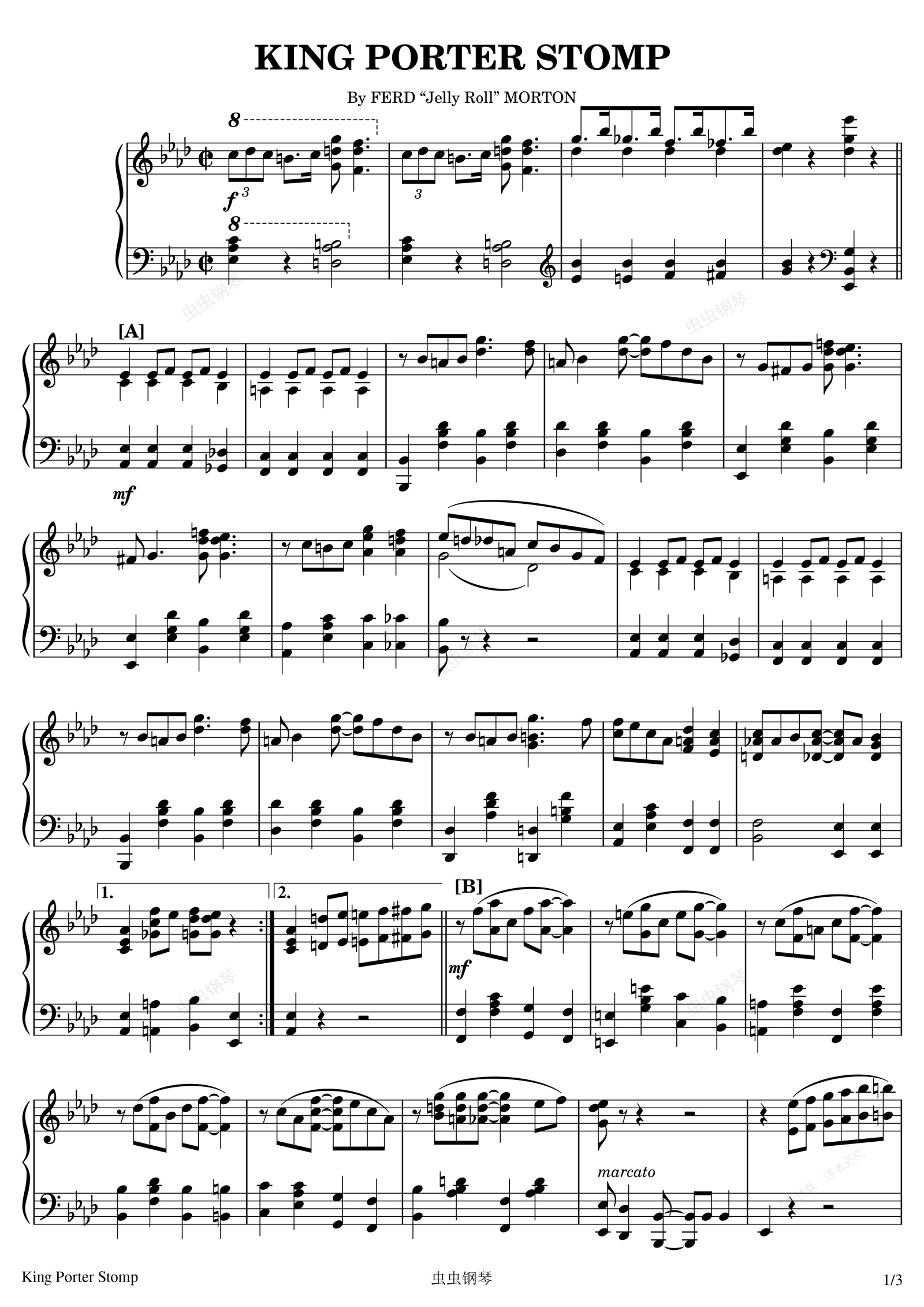 钢琴谱:King Porter Stomp - Jelly Roll Morton - Melrose edition