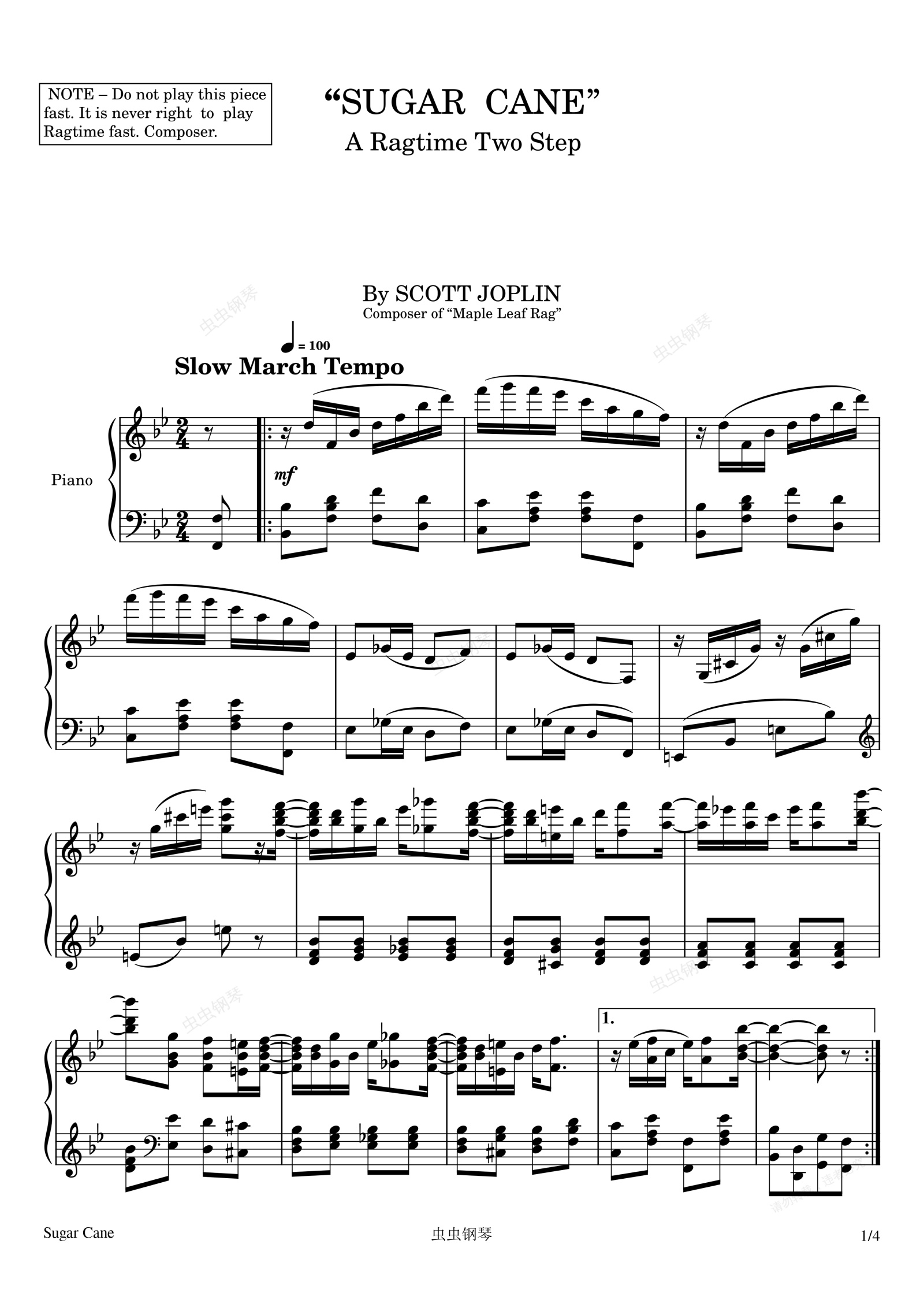 钢琴谱:Sugar Cane - Scott Joplin - 1908