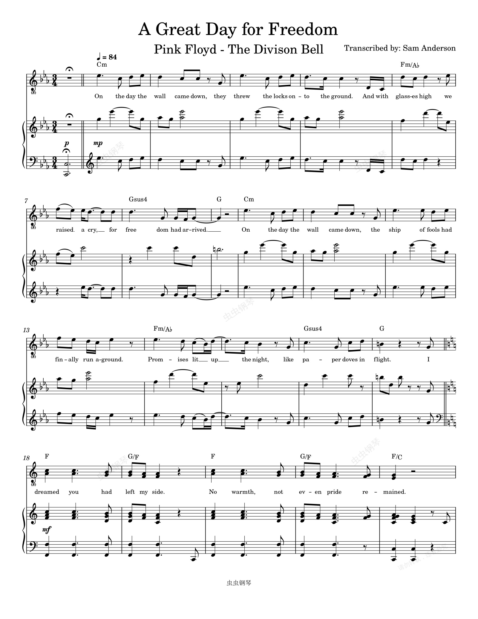 钢琴谱:A Great Day for Freedom-Pink Floyd