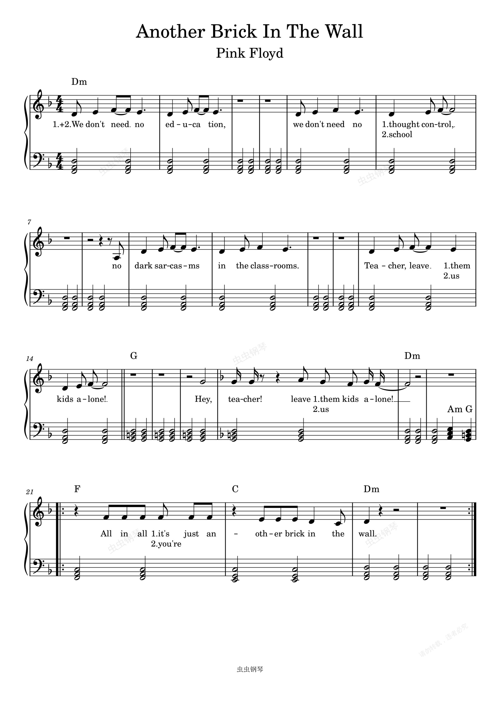 钢琴谱:Another Brick In The Wall-Pink Floyd