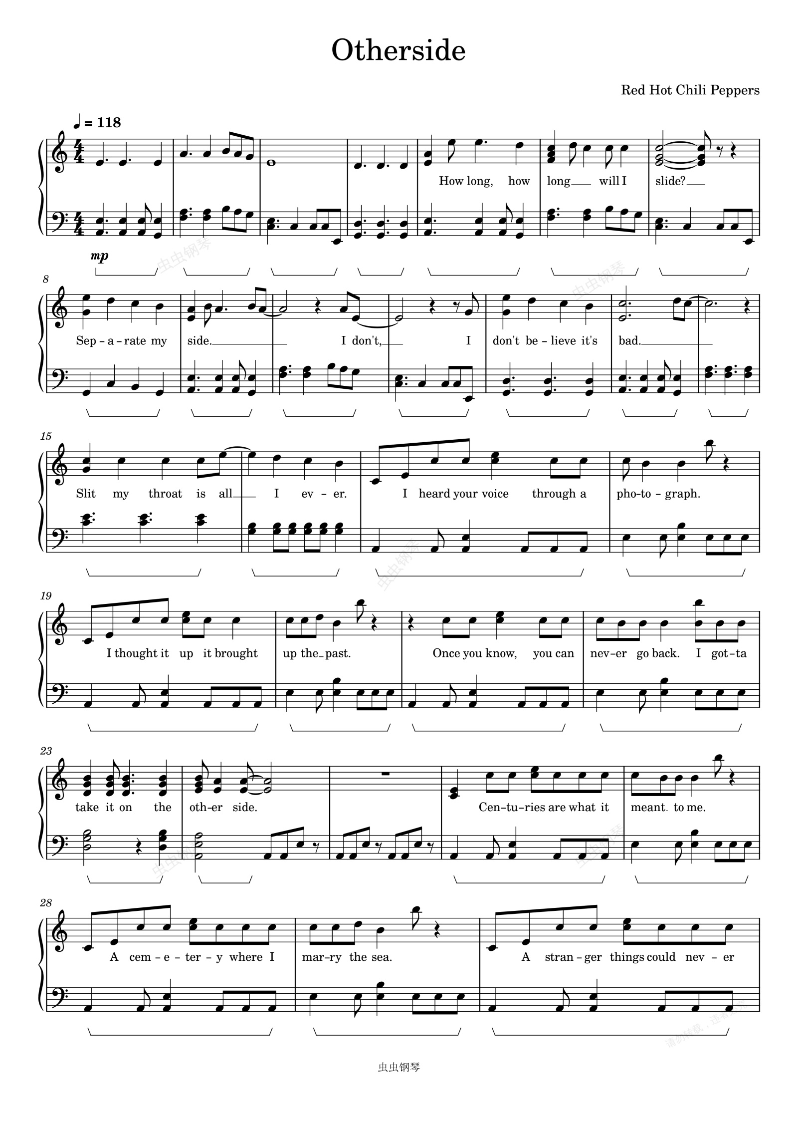钢琴谱:Otherside - Red Hot Chili Peppers