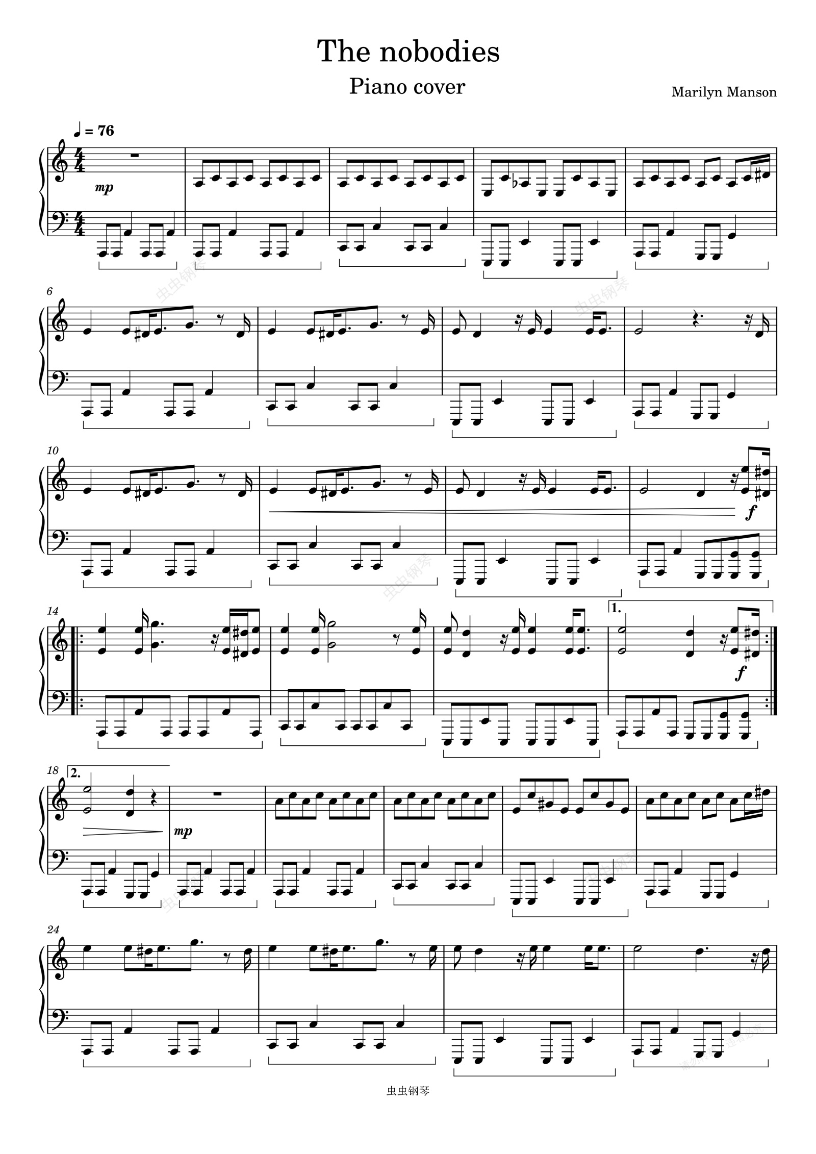 钢琴谱:The nobodies-Marilyn Manson
