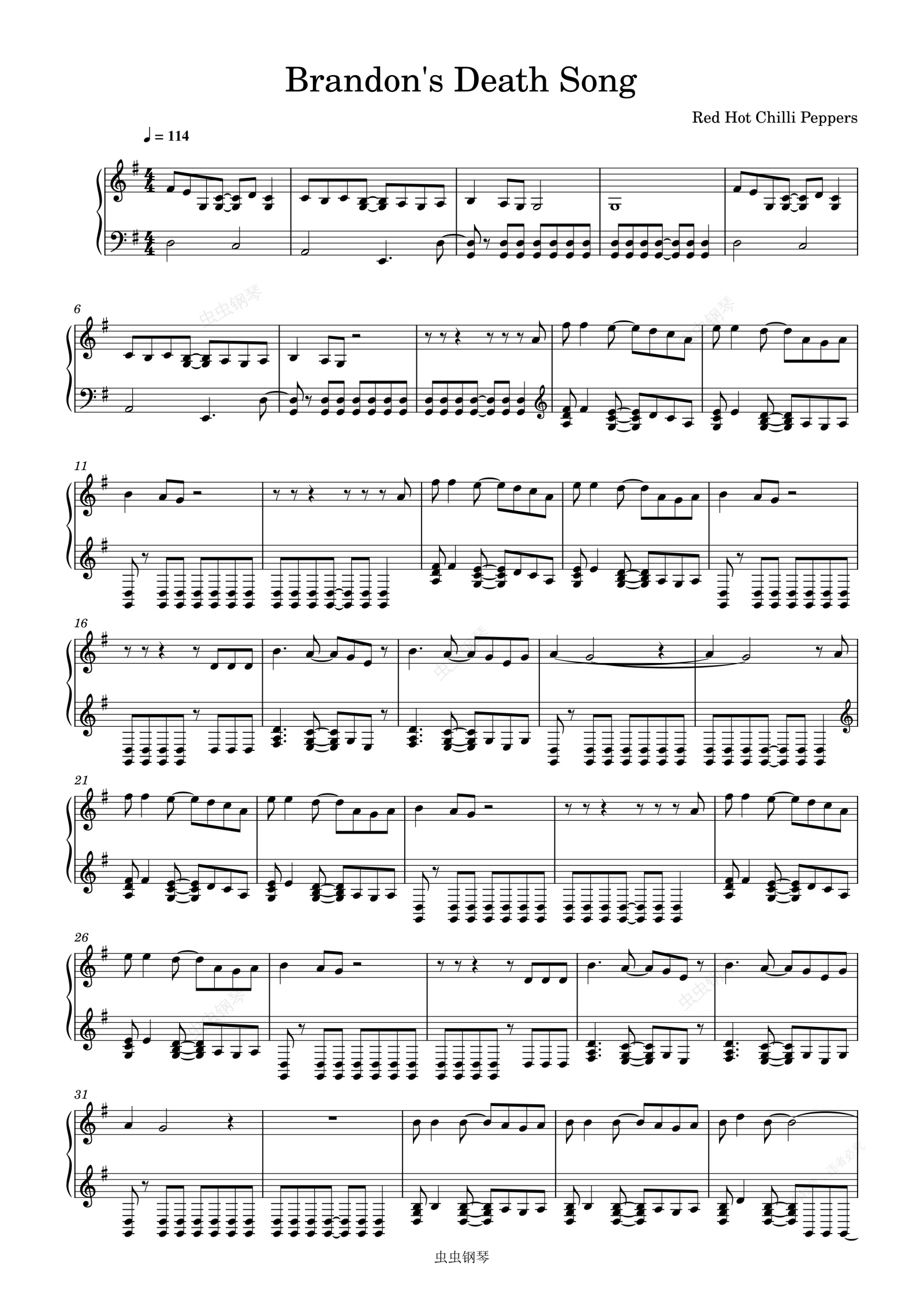 钢琴谱:Brandon's Death Song-Red Hot Chilli Peppers