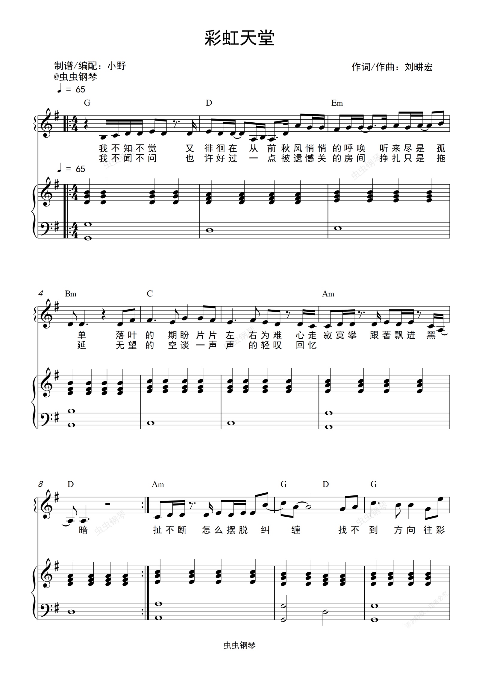 钢琴谱:彩虹天堂(和弦弹唱版)