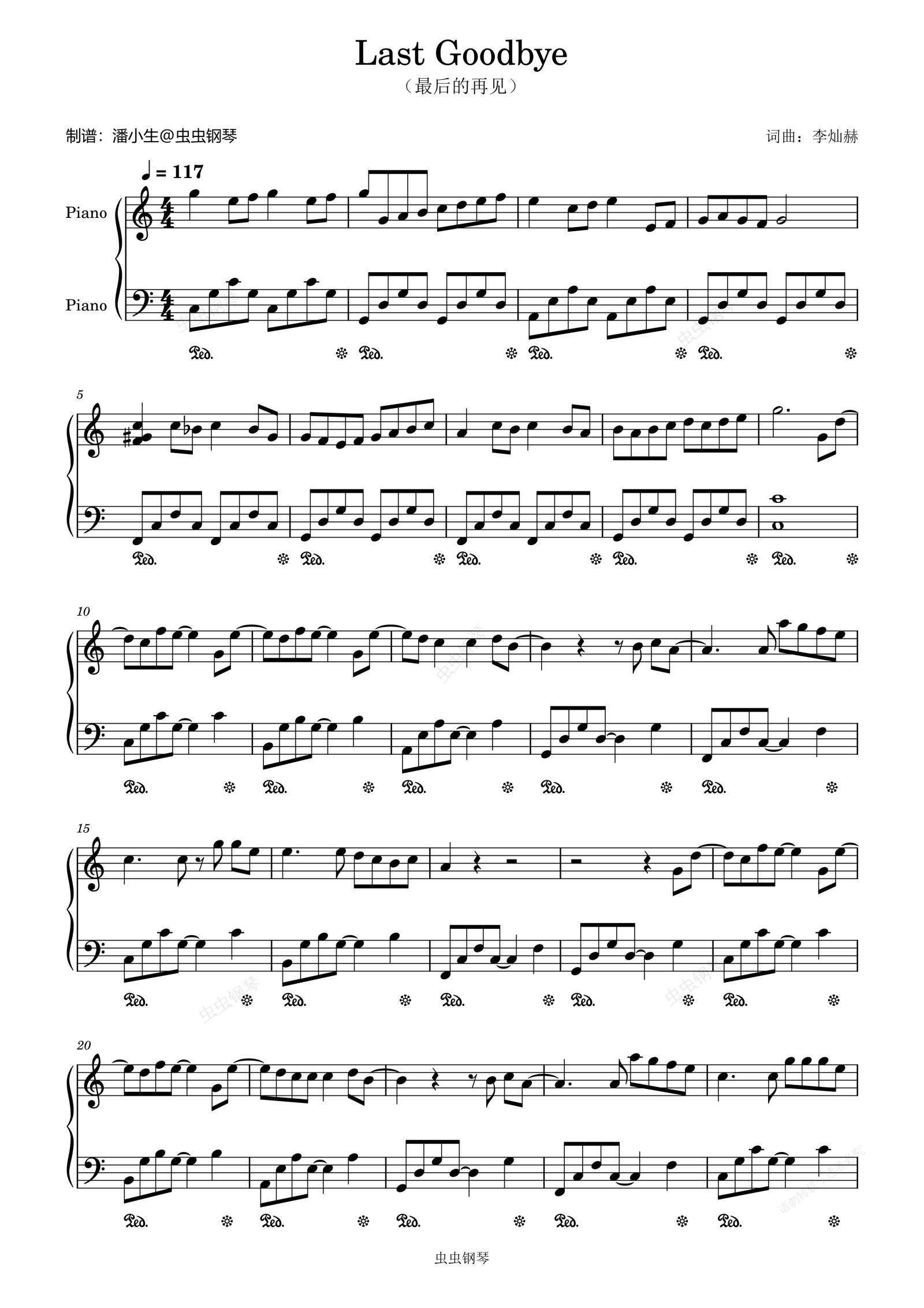 钢琴谱:Last Goodbye 乐童音乐家 独奏版 钢琴五线谱 最后的再见