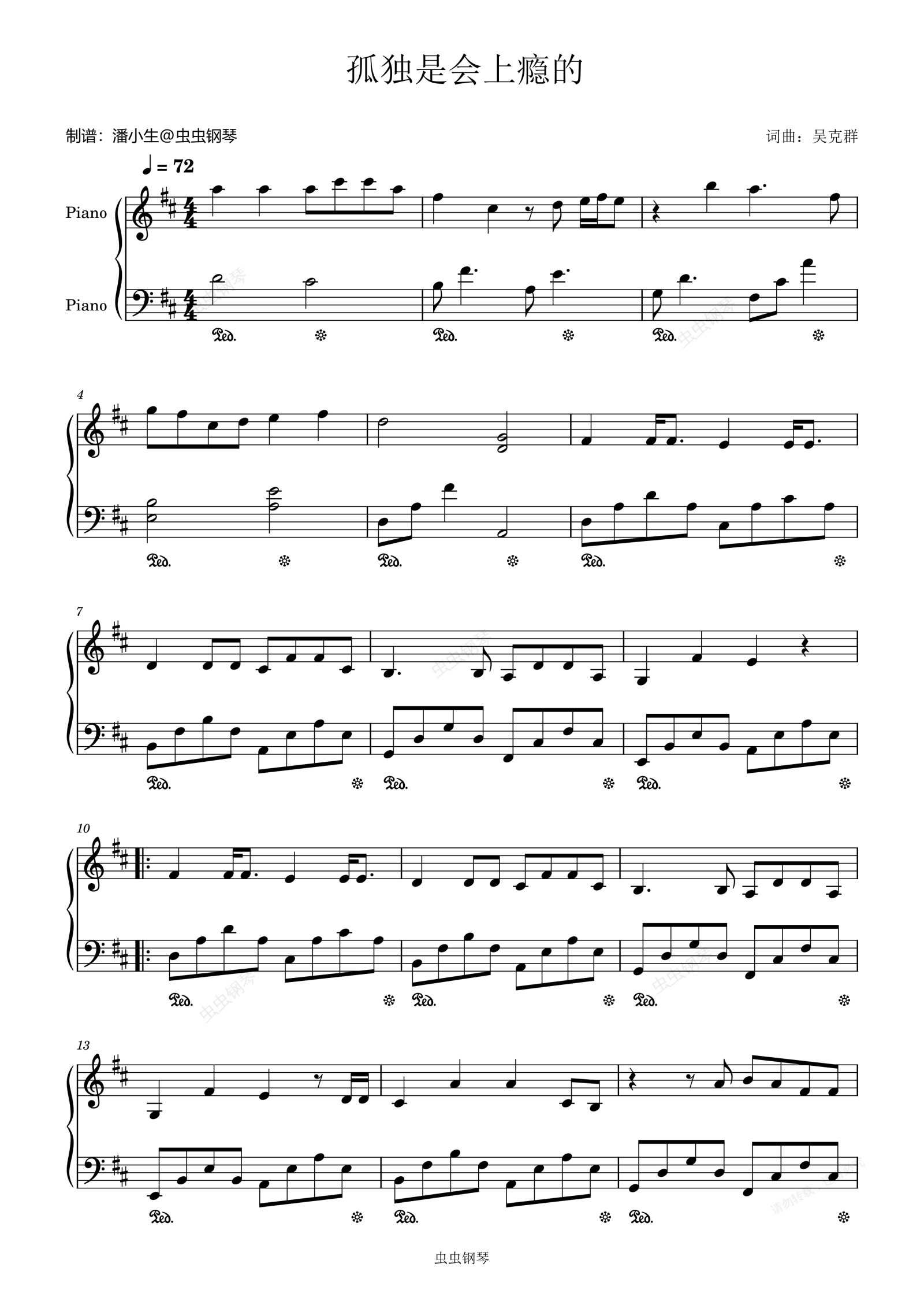 钢琴谱:孤独是会上瘾的 吴克群 独奏版 钢琴五线谱