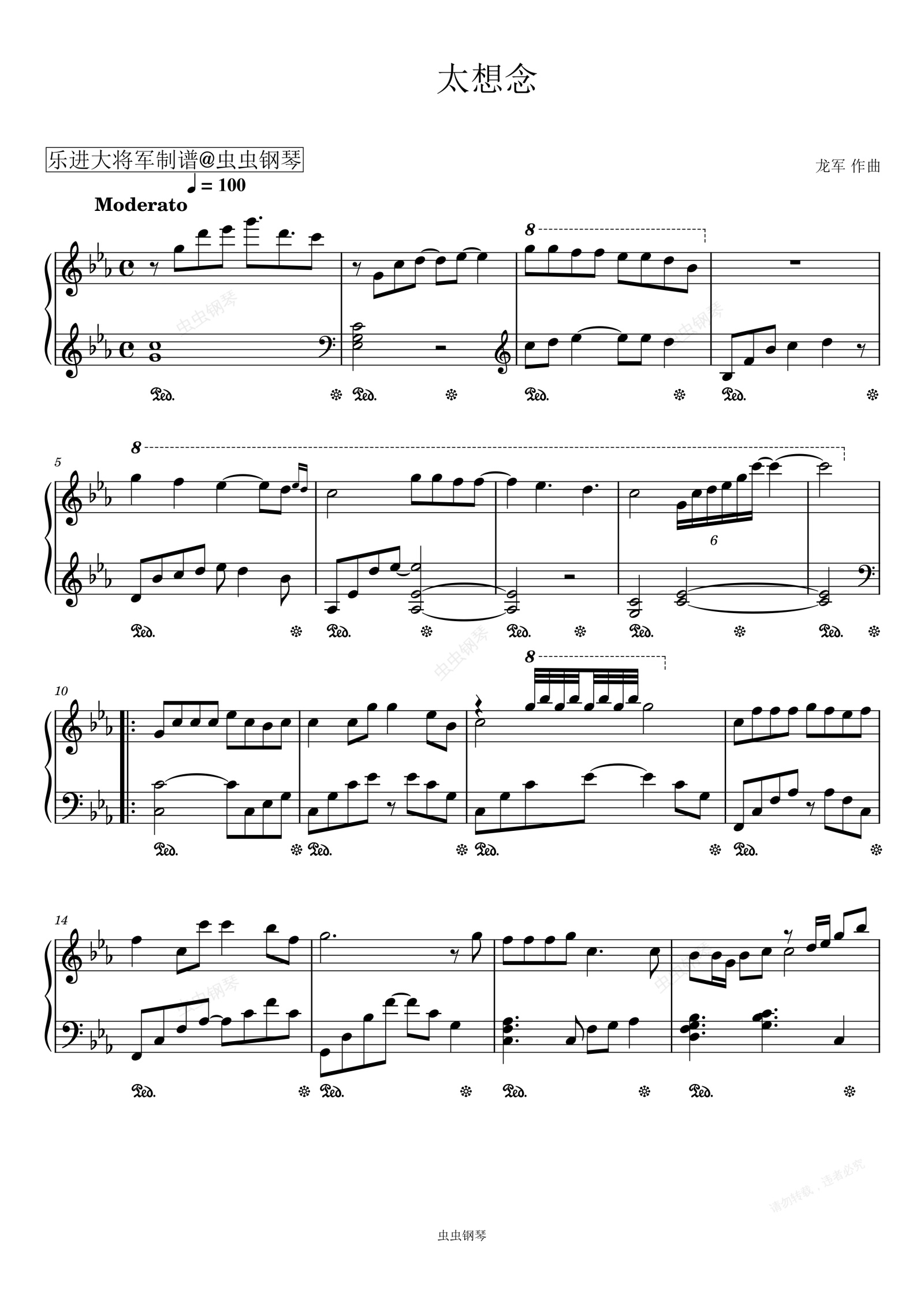 钢琴谱:太想念 原调
