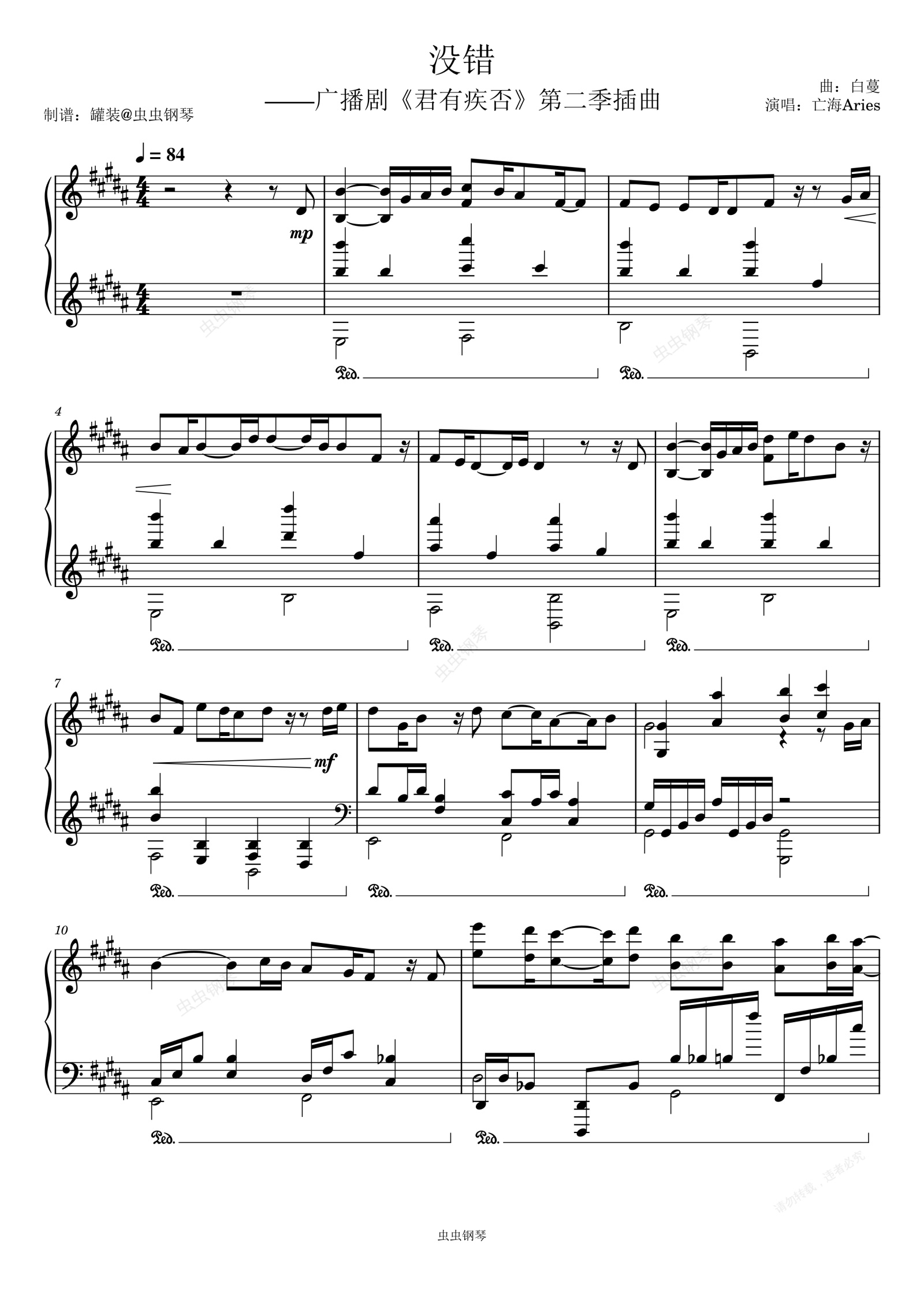 钢琴谱:没错(广播剧《君有疾否》第二季插曲)