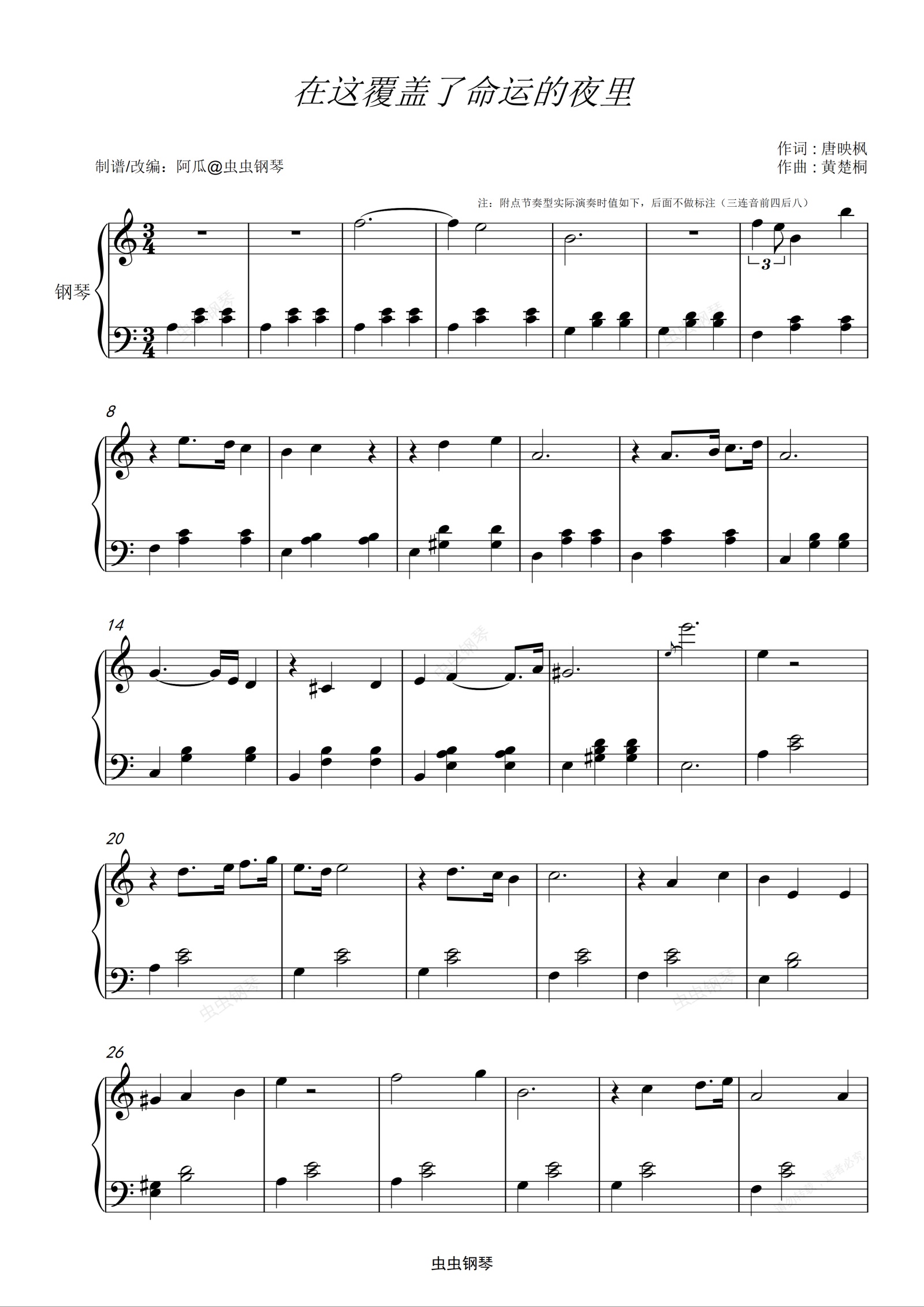 钢琴谱:在这覆盖了命运的夜里-【钢琴独奏】