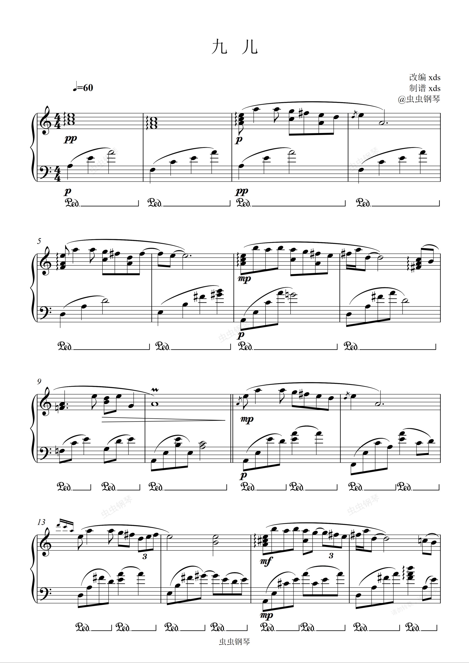 钢琴谱:《九儿》a小调版本