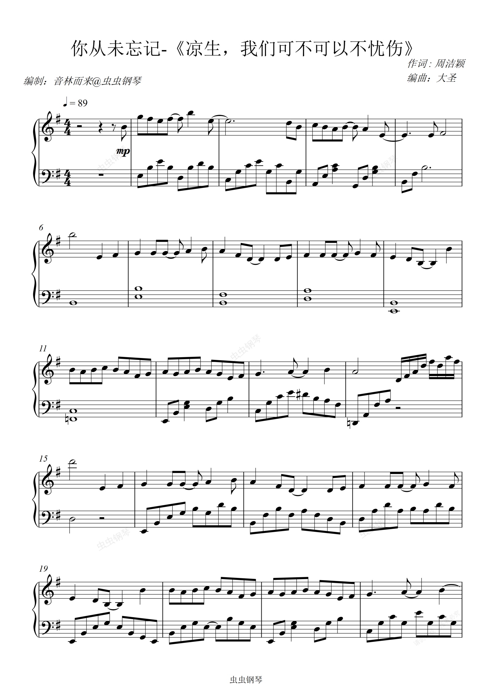 钢琴谱:你从未忘记-《凉生,我们可不可以不忧伤》钢琴演奏版