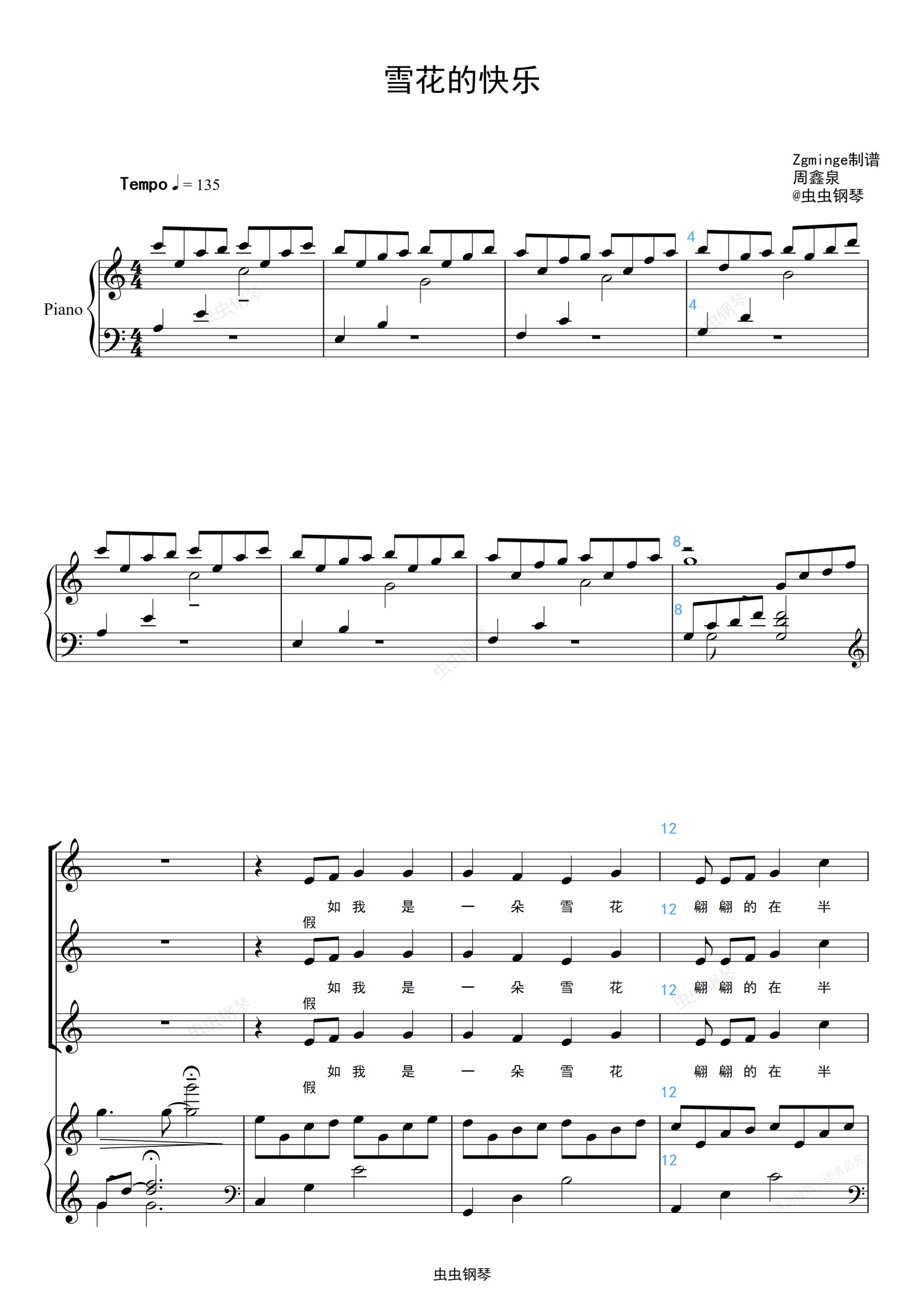 钢琴谱:雪花的快乐 合唱谱带钢琴伴奏