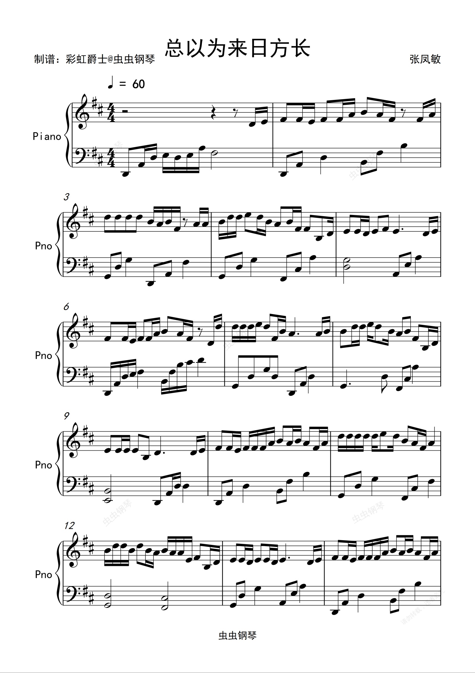 钢琴谱:总以为来日方长 钢琴谱 梅朵