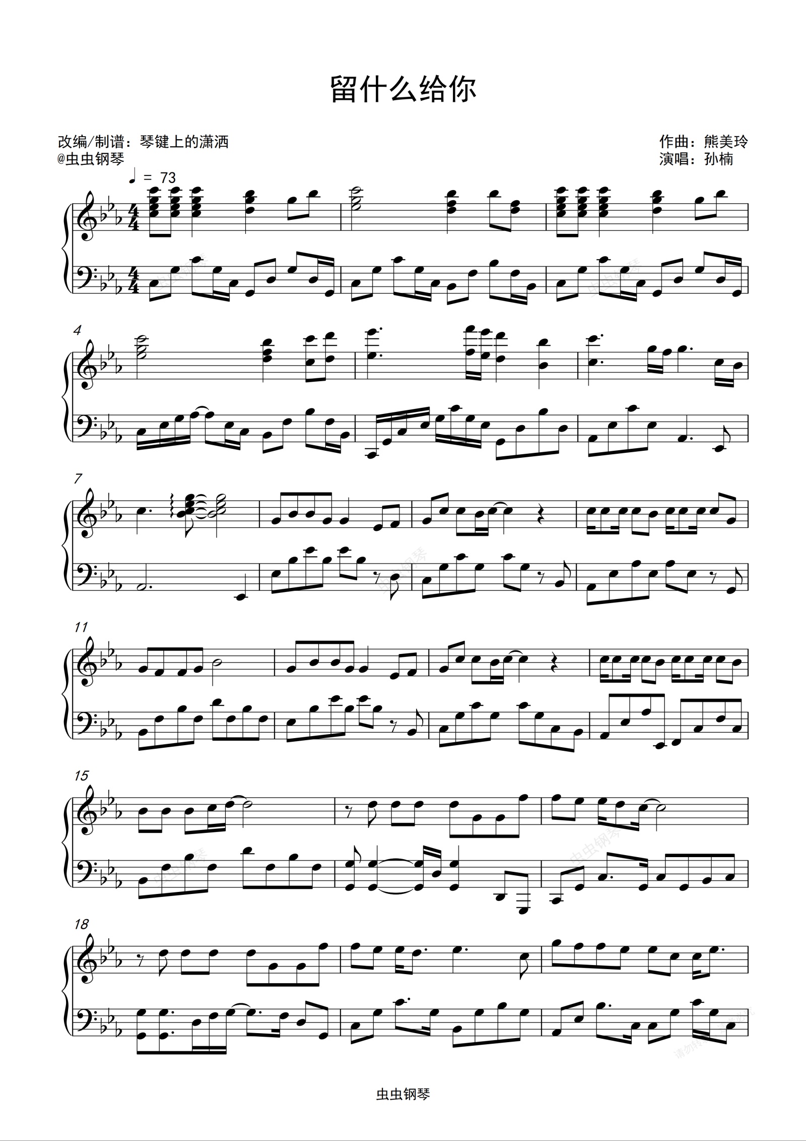 钢琴谱:《留什么给你》-孙楠-完美c小调独奏