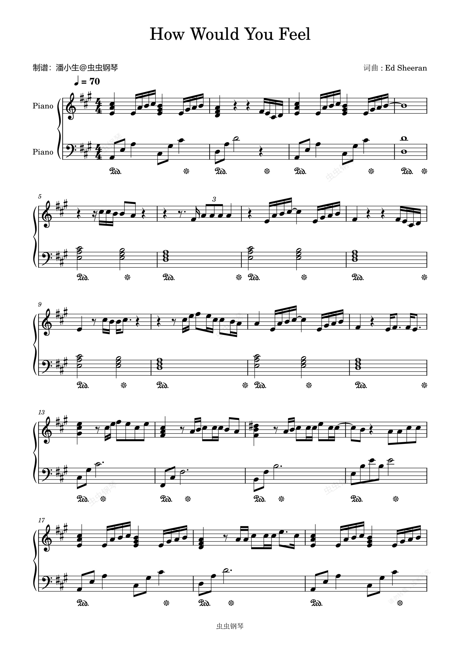 钢琴谱:How Would You Feel 独奏版 钢琴谱 Ed Sheeran