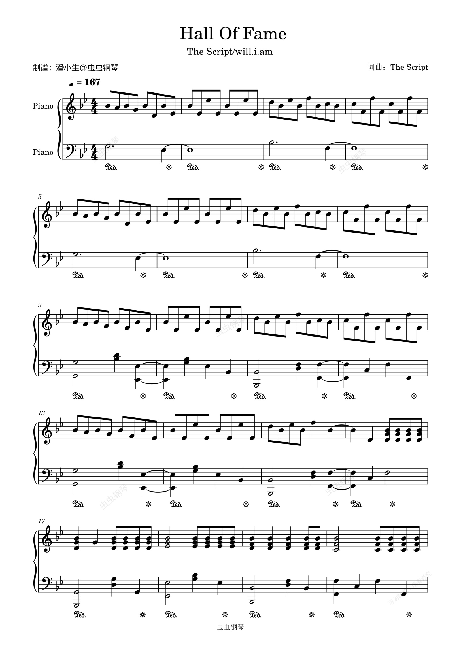 钢琴谱:Hall Of Fame 独奏版 钢琴谱 The Script will.i.am