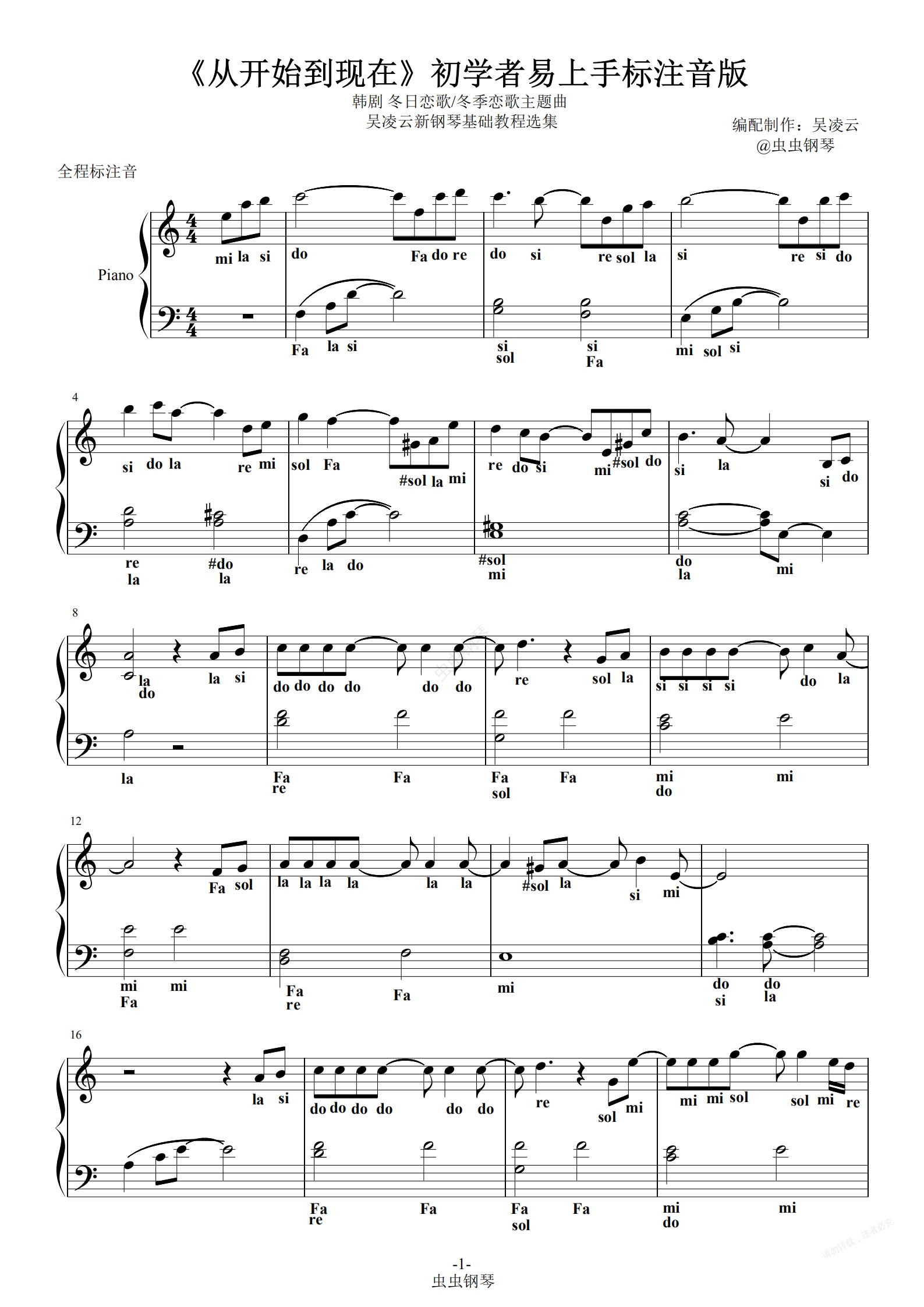 钢琴谱:从开始到现在 初学者易上手标注音版 韩剧 冬日恋歌/冬季恋歌主题曲 吴凌云钢琴基础教程选集