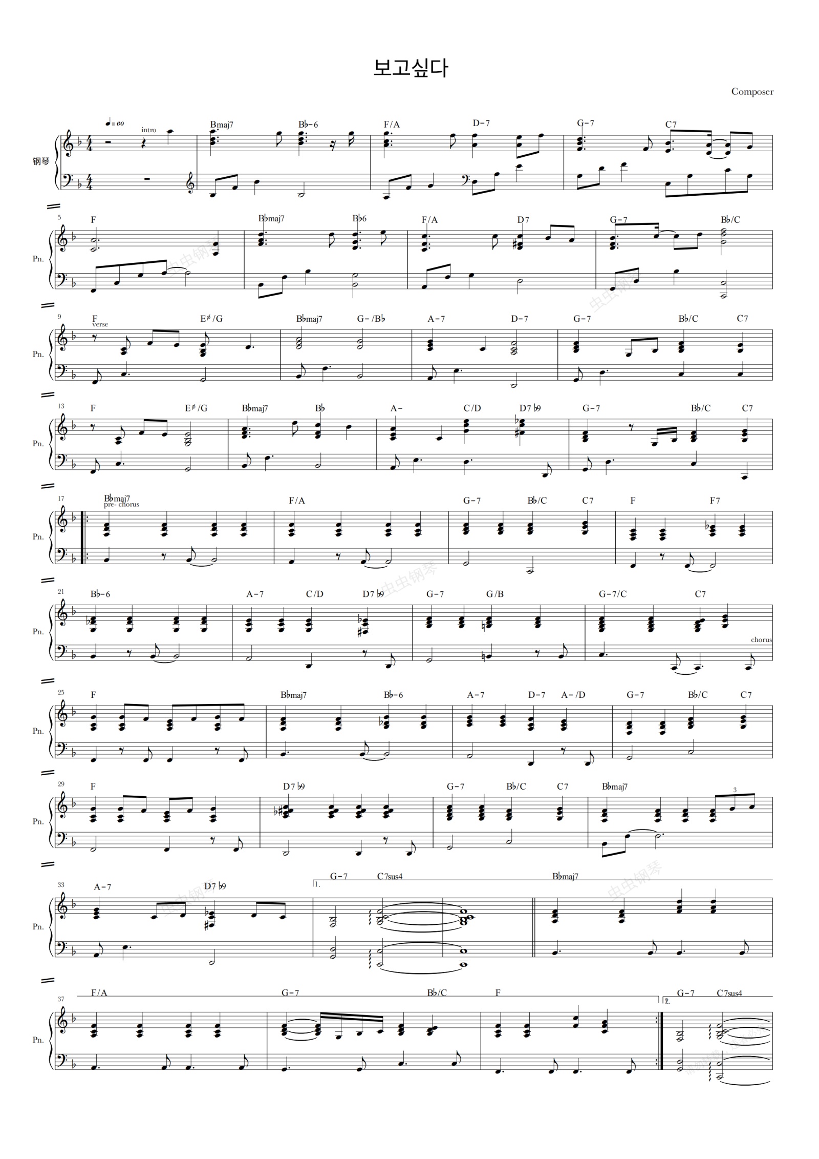 钢琴谱:보고싶다钢琴弹唱伴奏想你