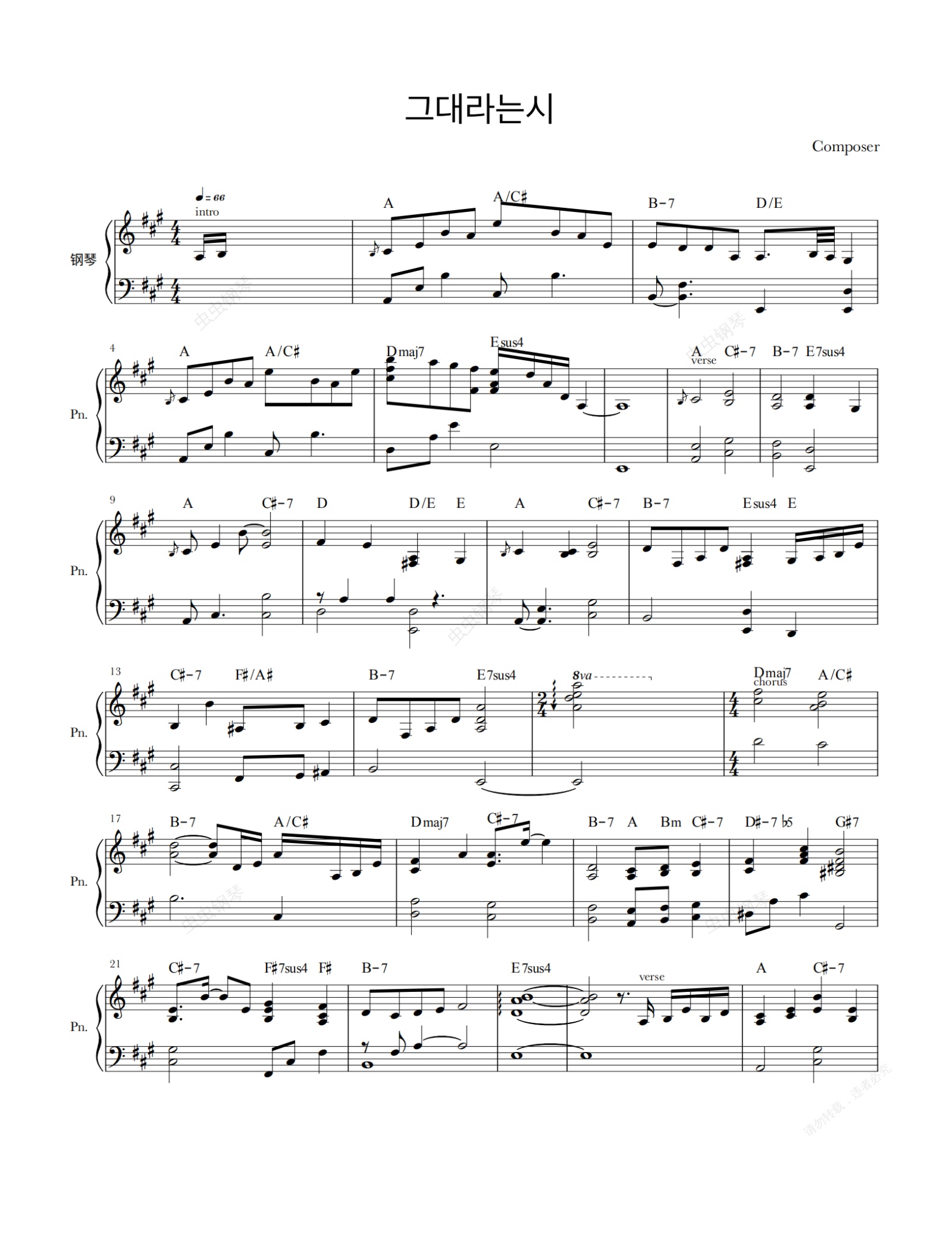 钢琴谱:그대라는시all about you德鲁纳酒店韩剧ost名为你的诗泰妍