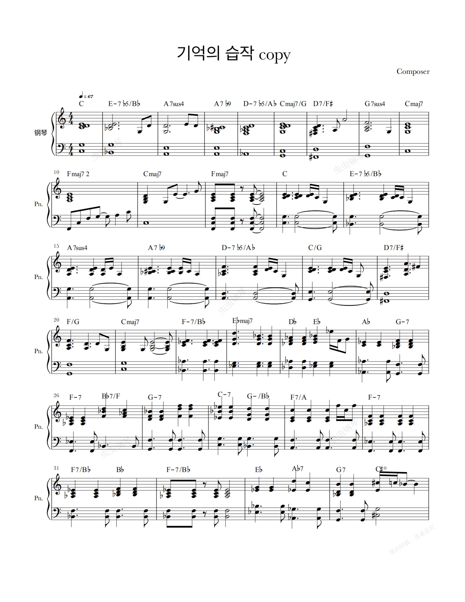 钢琴谱:金东律기억의습작记忆的习作回忆的习作钢琴弹唱伴奏