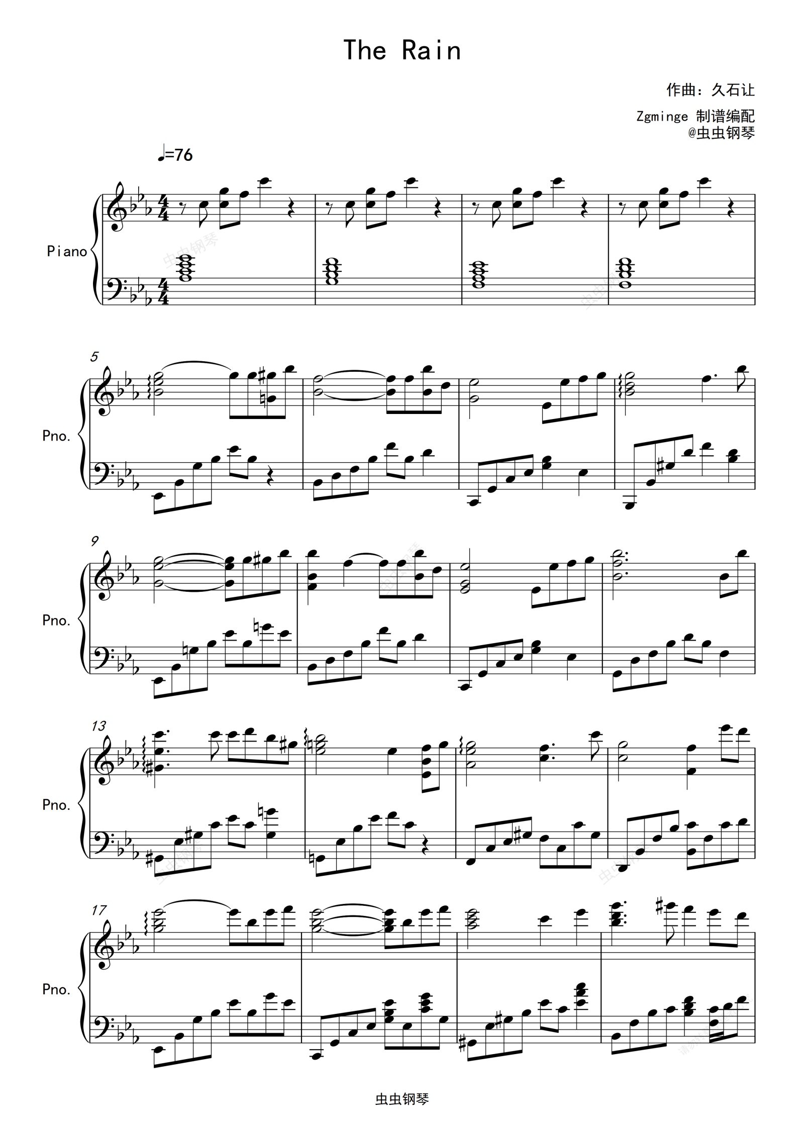 钢琴谱:The Rain 菊次郎的夏天