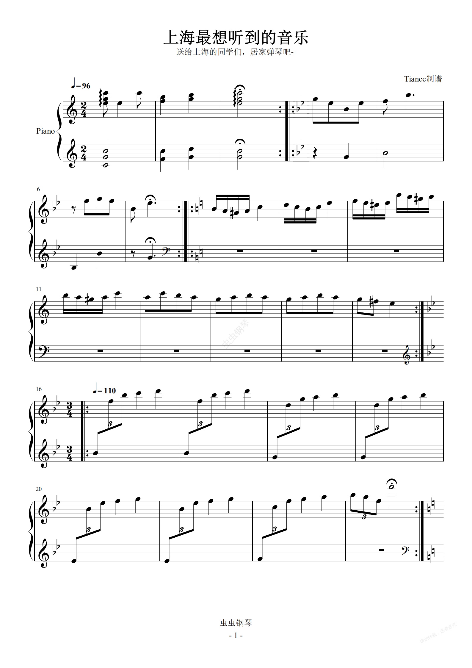 钢琴谱:《上海人民最想听的音乐》居家隔离辛苦了,那就练琴吧