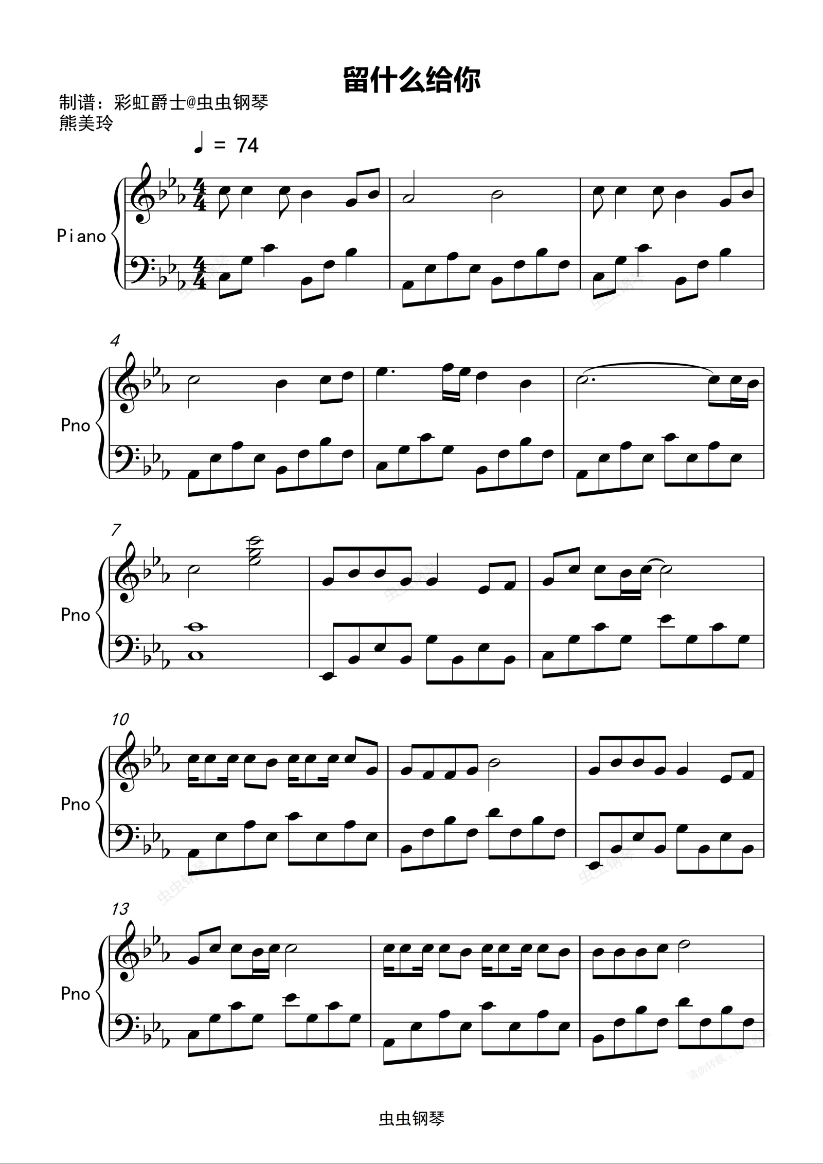 钢琴谱:留什么给你-简单版 孙楠