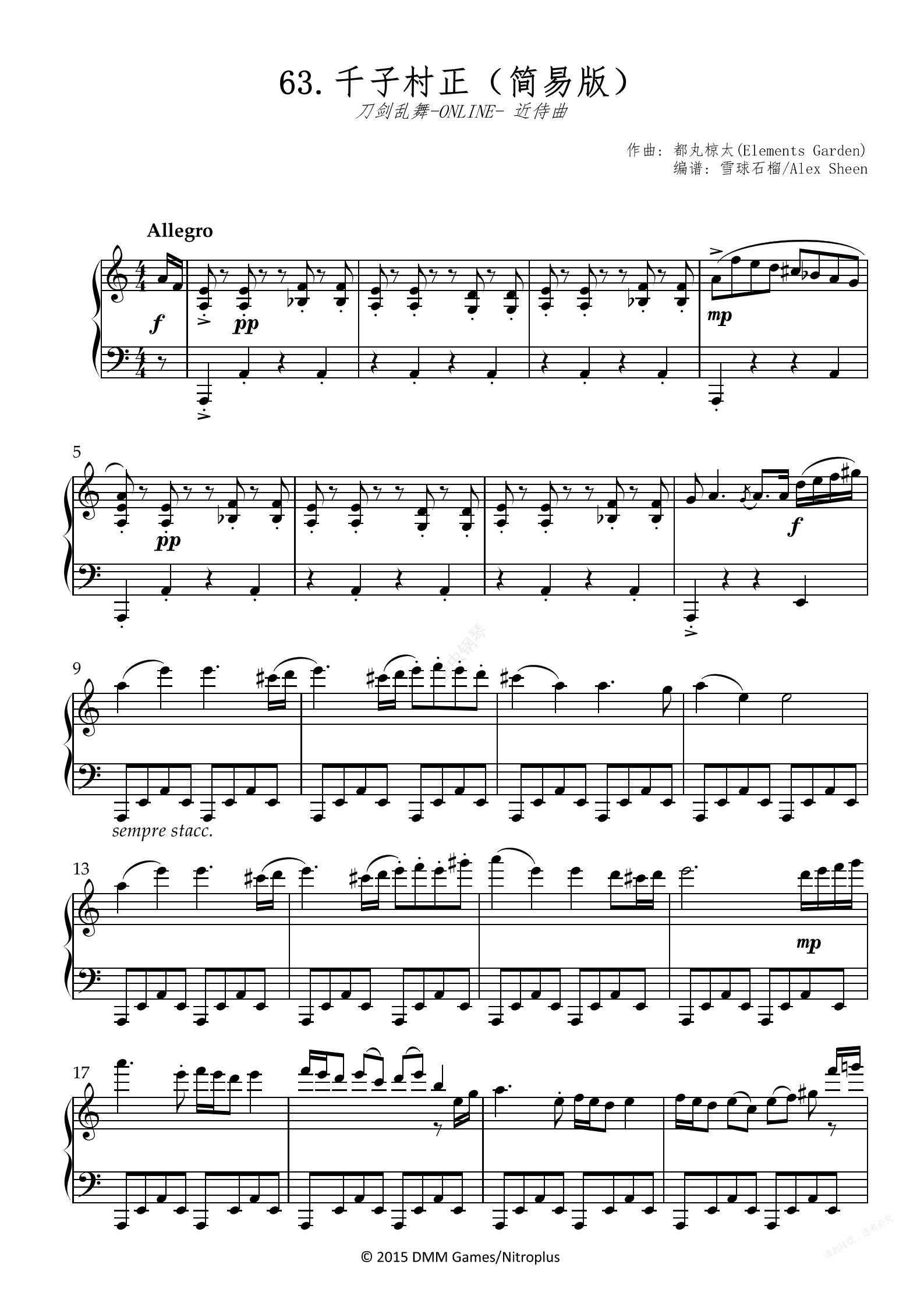 钢琴谱:千子村正 近侍曲 【刀剑乱舞】(简易版)