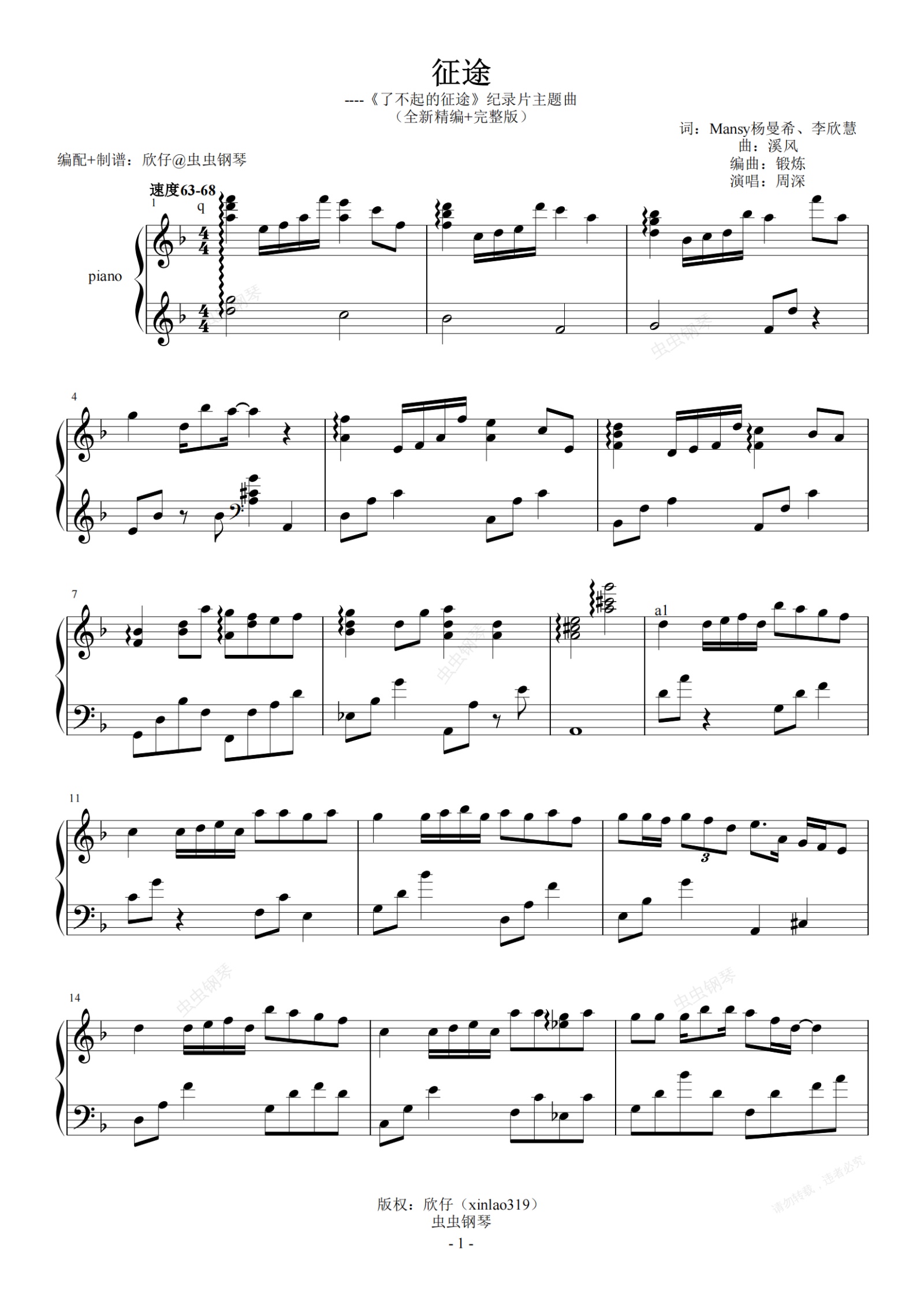 钢琴谱:周深-F《征途》(《了不起的征途》纪录片主题曲、全新精编+完整版)