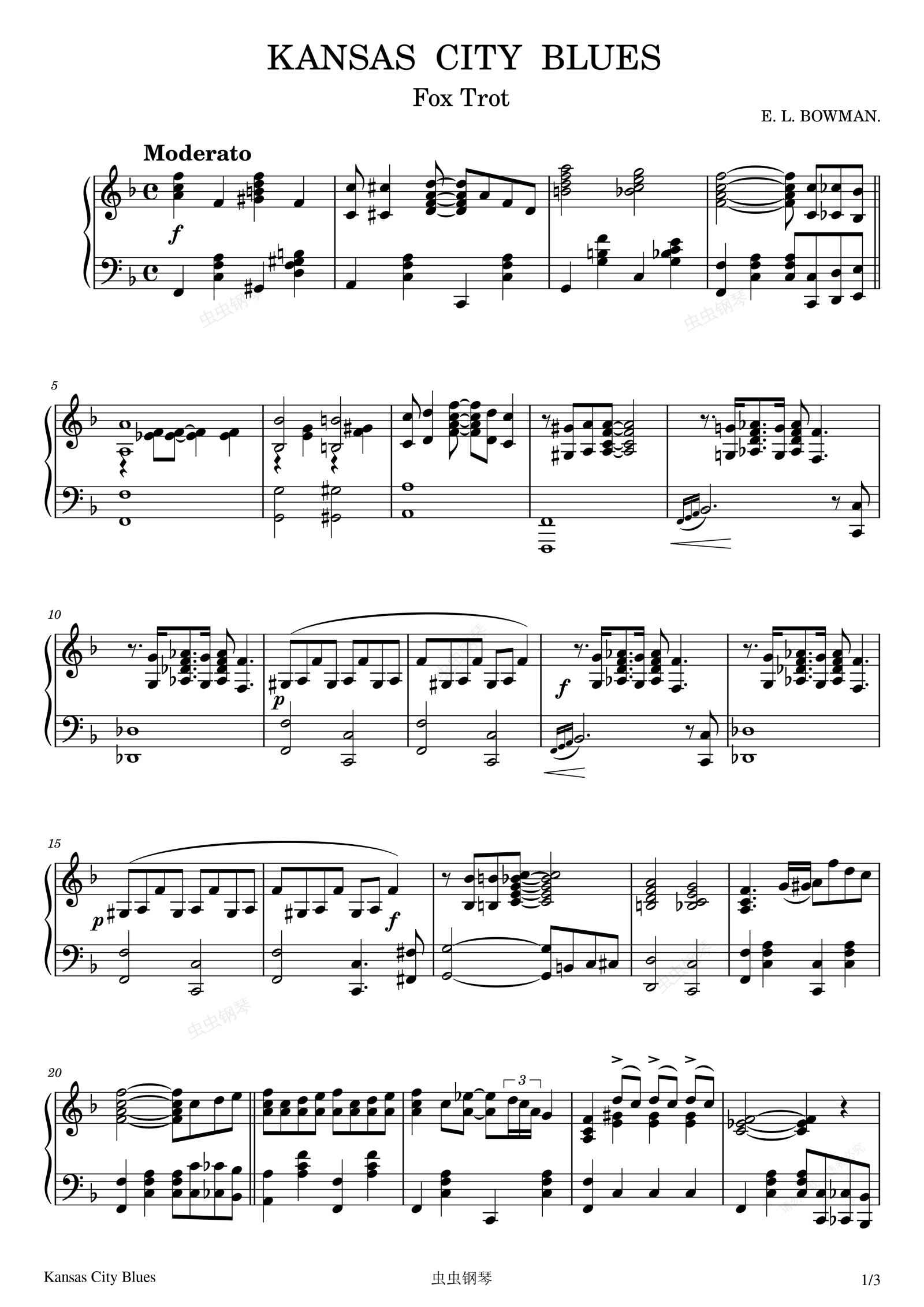 钢琴谱:Kansas City Blues – Euday L. Bowman