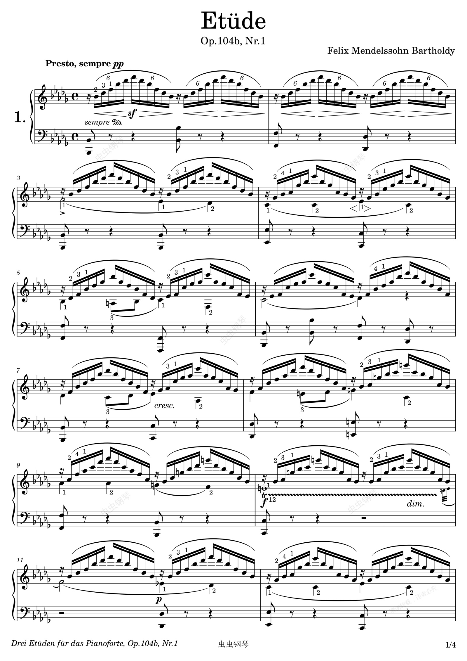 钢琴谱:Etüde, Op.104b, Nr.1 – Felix Mendelssohn